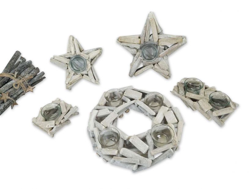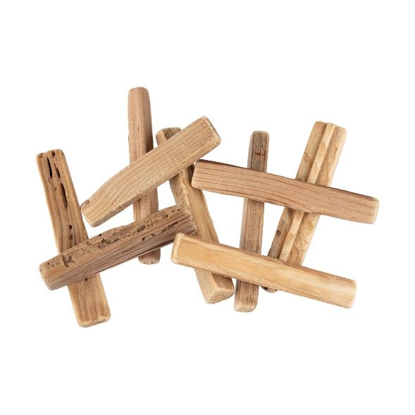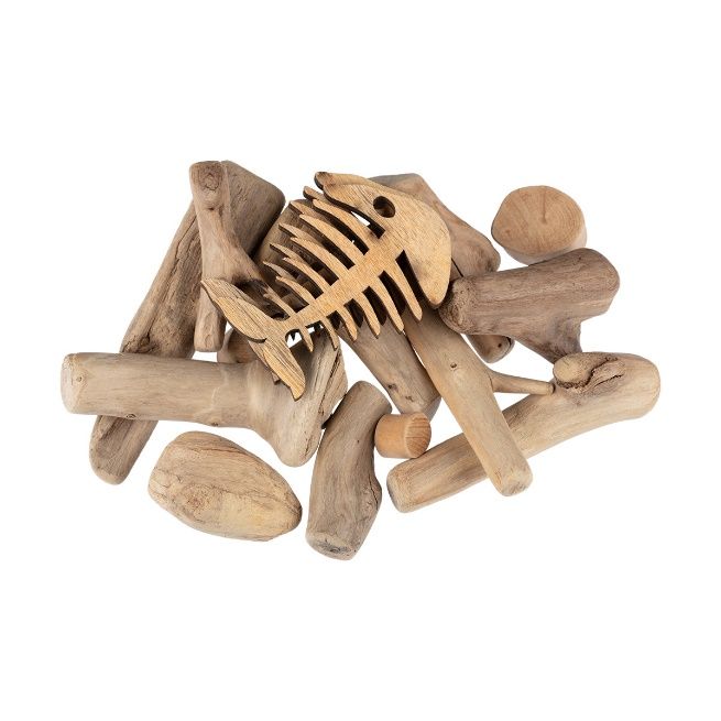 Например, в ассортименте российской марки BLUMENTAG сегодня есть наборы природных материалов «дрифтвуд» (арт. DRW). Это пять разных вариантов деревянных элементов, прошедших специальную обработку для имитации плавника. Есть срезы продолговатые (DRW-01) и круглые (DRW-04), палочки (DRW-05), а также веточки (DRW-03) и набор с элементами произвольной, максимально естественной формы в комплекте с двумя заготовками-«рыбами» для морского декора (DRW-02).