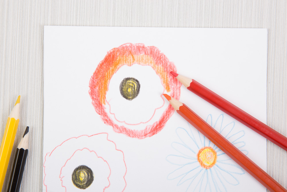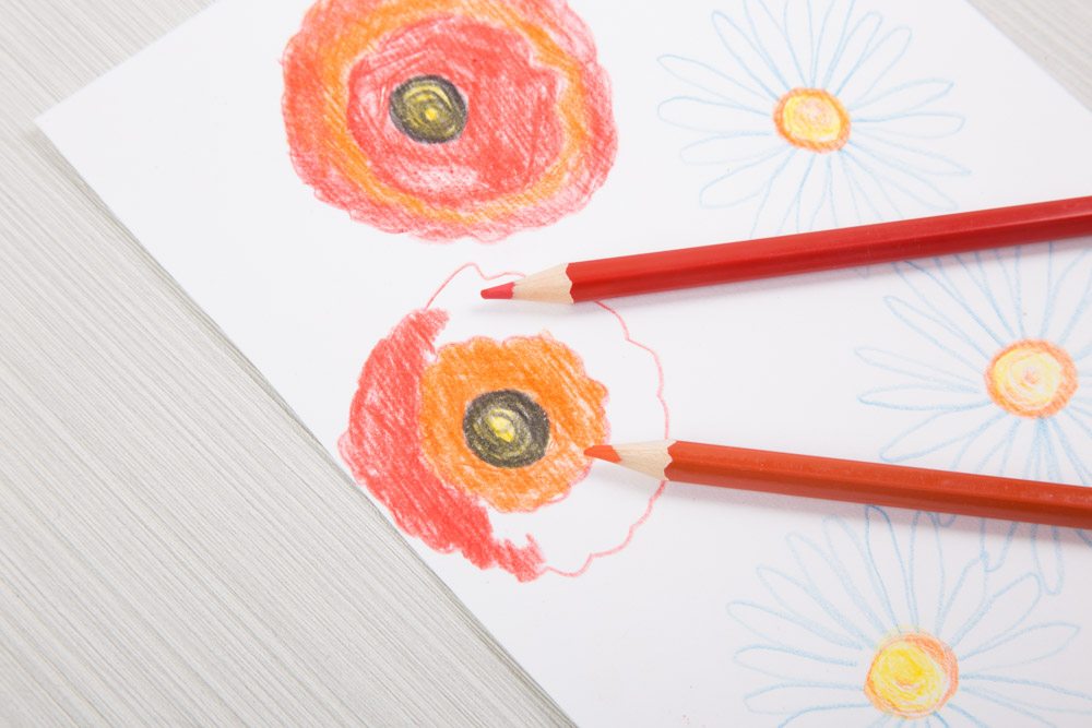 – Акварельный рисунок можно нарисовать карандашами. Сначала надо сделать рисунок акварельными карандашами, а затем размыть изображение водой. Но сначала подумайте, с чего лучше начать рисовать? Что нарисовать потом? Что можно сделать фоном для полевых цветов? Как можно получить разные оттенки красного, например, если у нас в коробке только один красный карандаш?