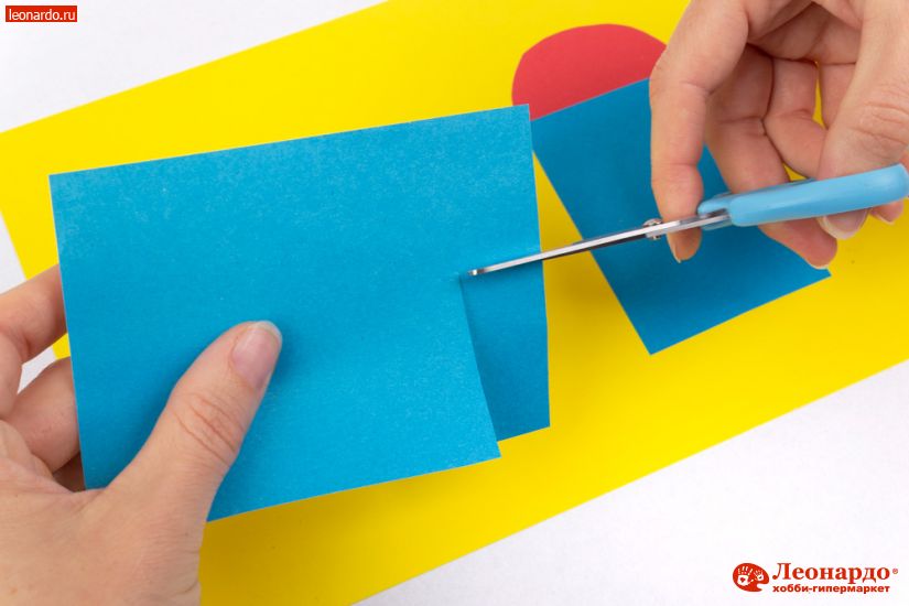 1. Для фона возьмите цветной картон формата А4. Подготовьте бумагу нескольких цветов, предварительно, для удобства детей, разрезав листы на 4 части.