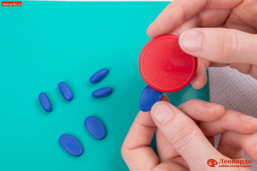 8. Чтобы сделать цветок, необходимо скатать много коротких колбасок, сплющить их между ладонями и прилепить к крышке по всей окружности.