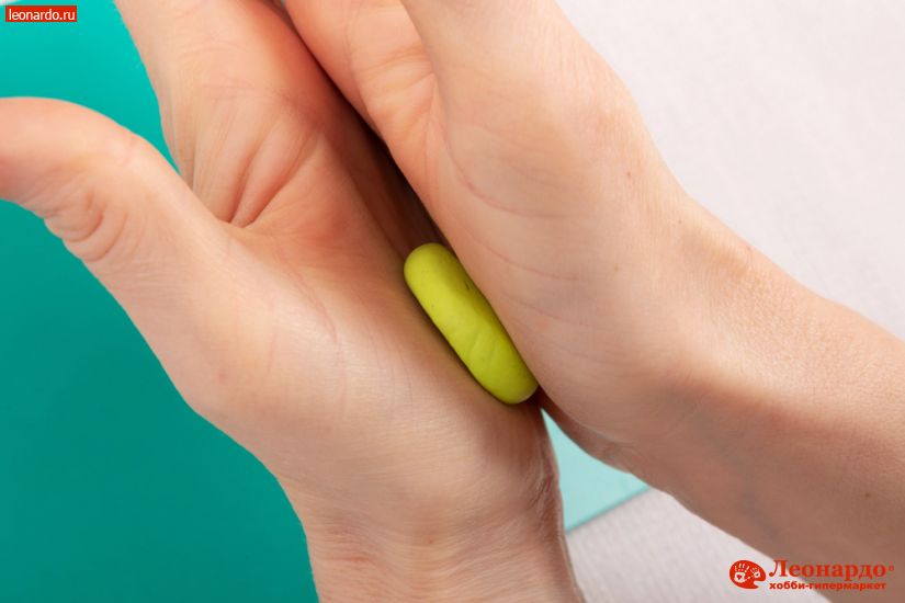 5. Сплющите его сначала между ладоней, а затем пальцами, сохраняя форму круга. Толщина пластилинового круга должна быть 3-5 мм.