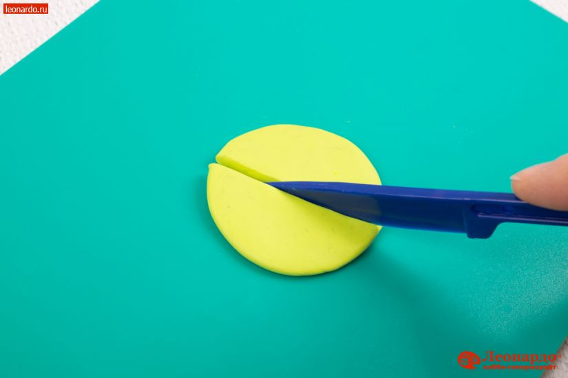 6. Положите круг на дощечку, разрежьте его стекой пополам.