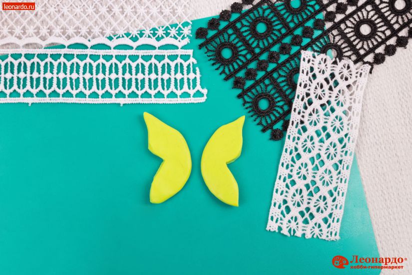 10. Аналогичным способом сделайте второе крыло. Оба должны быть максимально симметричными. Затем подготовьте кружева для того, чтобы сделать оттиск на пластилине.