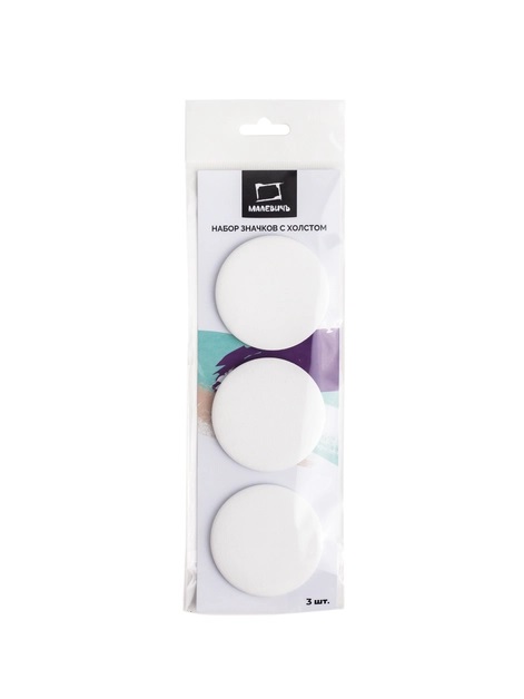 Круглые значки-холсты диаметром 5,6 см. Классический холст 250 г/м2, из 100% хлопка, загрунтованный, в виде значка с застежкой на обороте. Подходит для рисования маслом, акрилом и акриловыми маркерами. Комплект из 3-х штук.