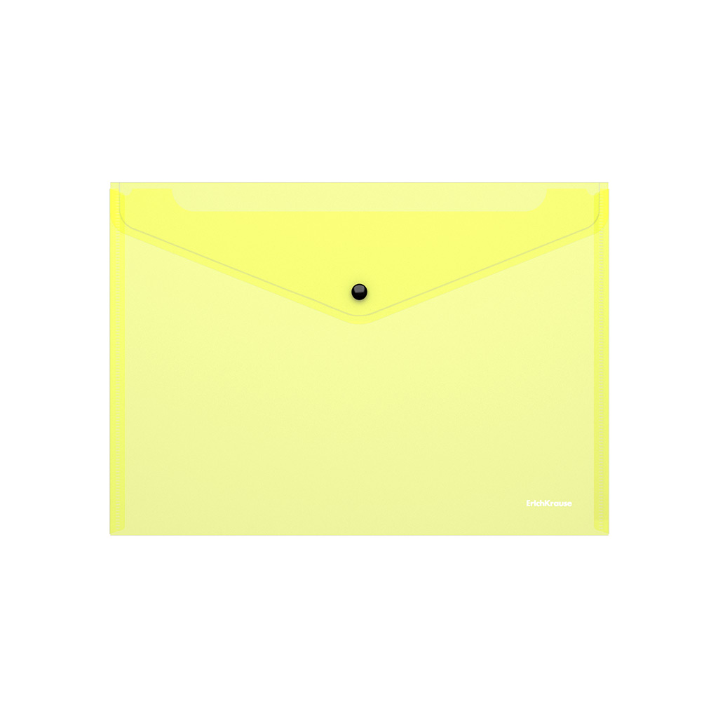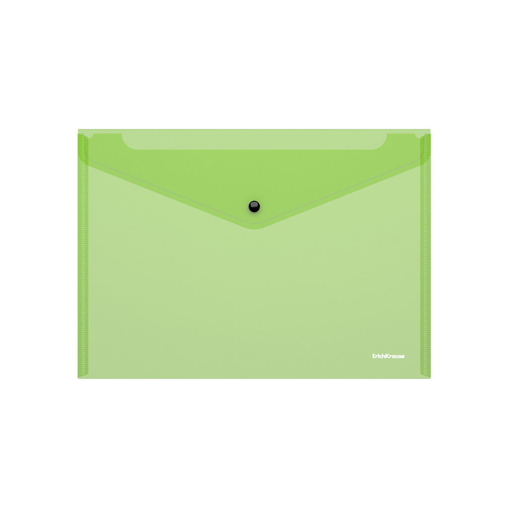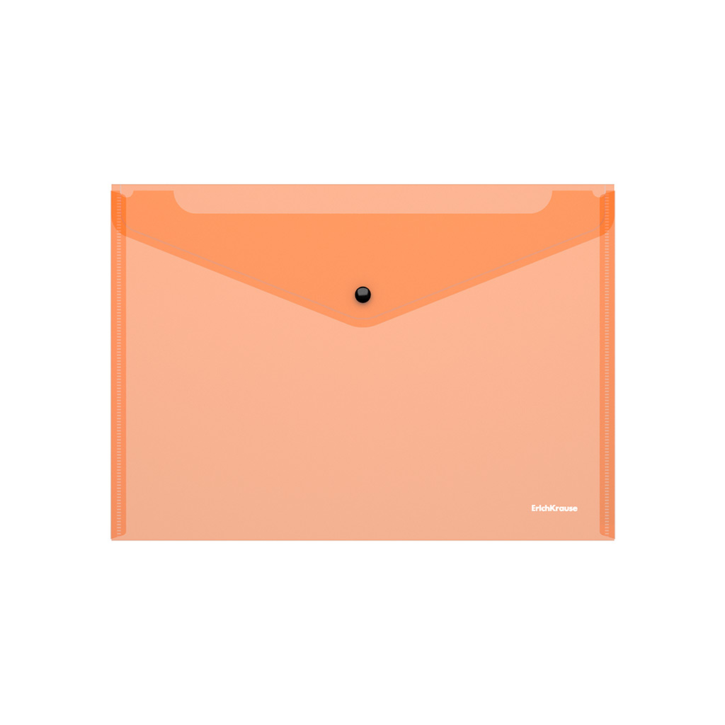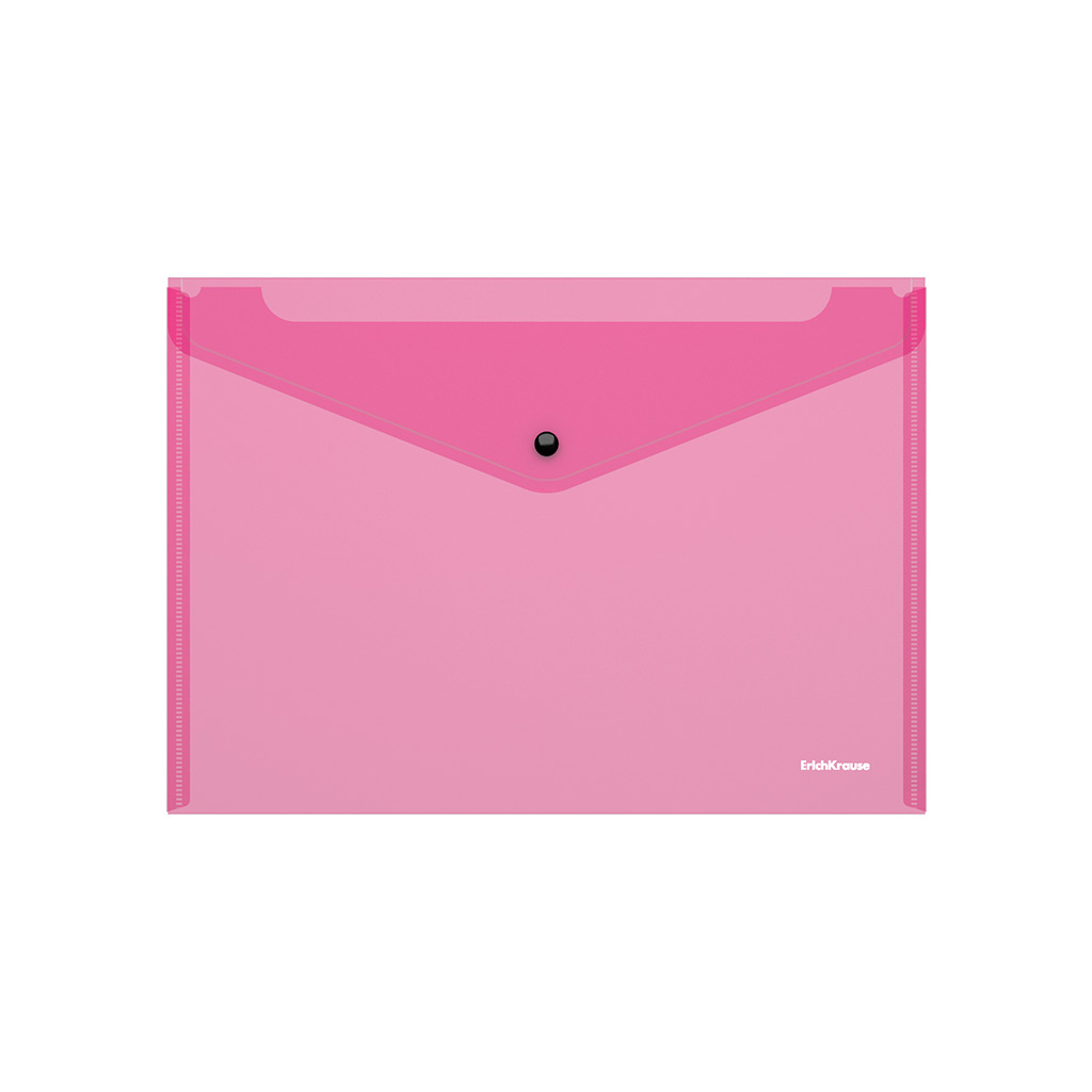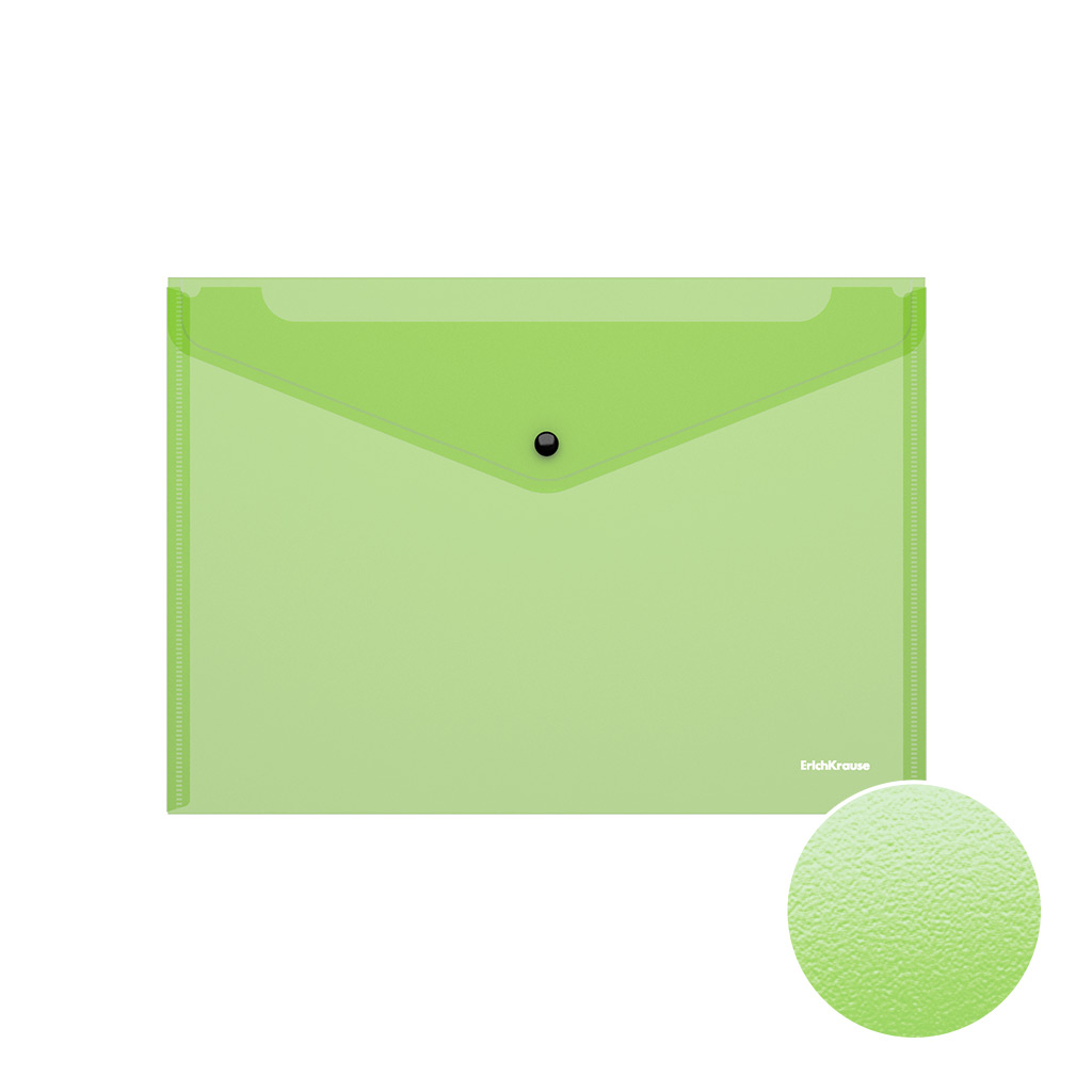Папка-конверт на кнопке формата А4 из высококачественного полупрозрачного пластика с текстурой поверхности "апельсиновая корка", на которой не видно отпечатков пальцев и мелких царапин. Предназначена для хранения и транспортировки небольшого количества документов. Цвет папки – ассорти: розовый, оранжевый, желтый, зеленый. Надежная застежка-кнопка обеспечивает быстрый доступ к документам. Папка вмещает до 120 бумажных листов. Размер - 232х333мм, толщина - 0.14мм. Единица продажи - 1 папка. Поставляется в различных вариантах цвета/дизайна без возможности выбора.