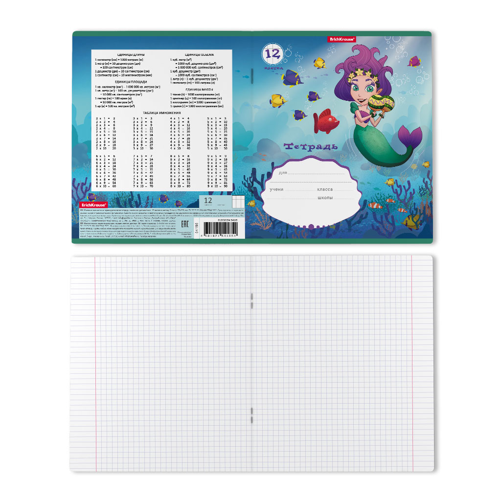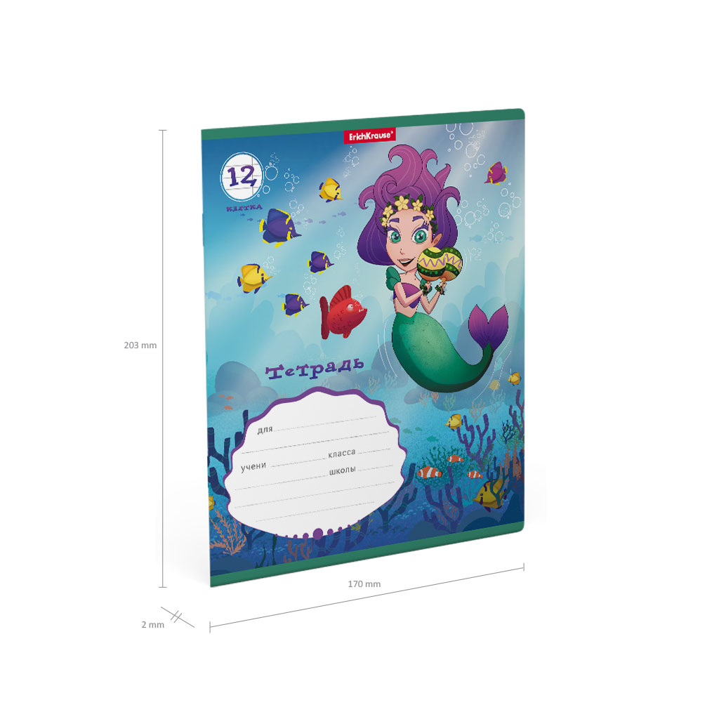 Тетрадь школьная ученическая формата А5+ [170х203 мм]. Обложка из высококачественного мелованного картона плотностью 180 г/м2. В блоке 12 листов в клетку с полями. Бумага офсетная плотностью 60 г/м2. Цвет линовки - синий. Скругленные уголки обложки и блока. Тип скрепления - скоба. Тетради упакованы в термоусадочную пленку по 10 штук.