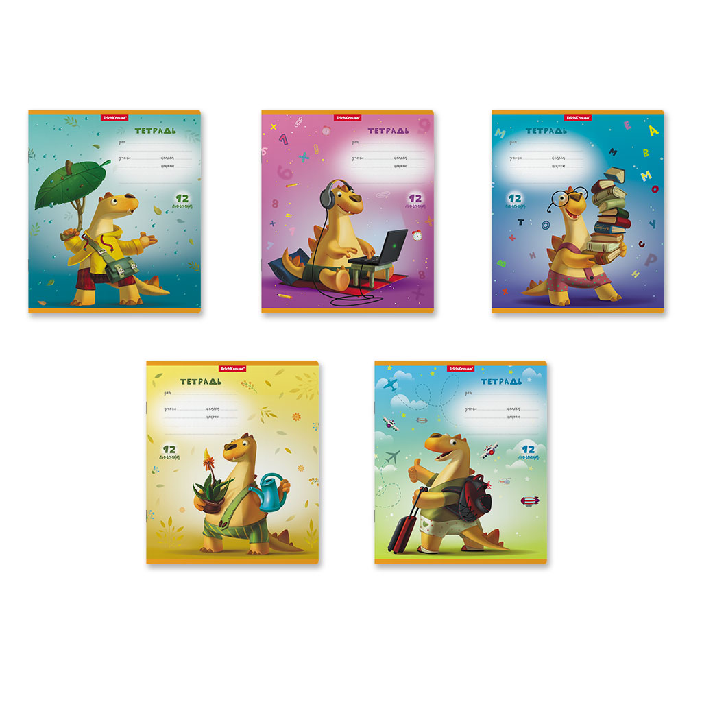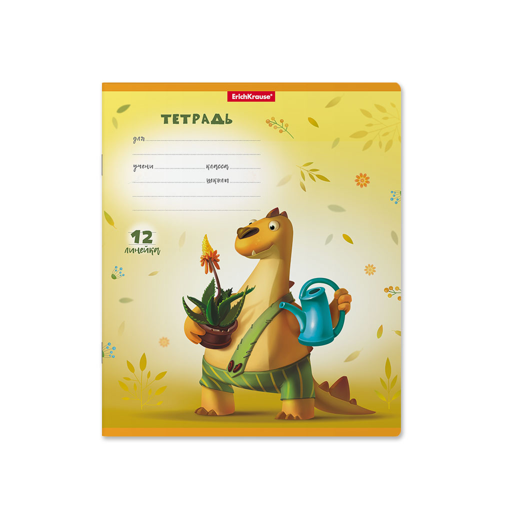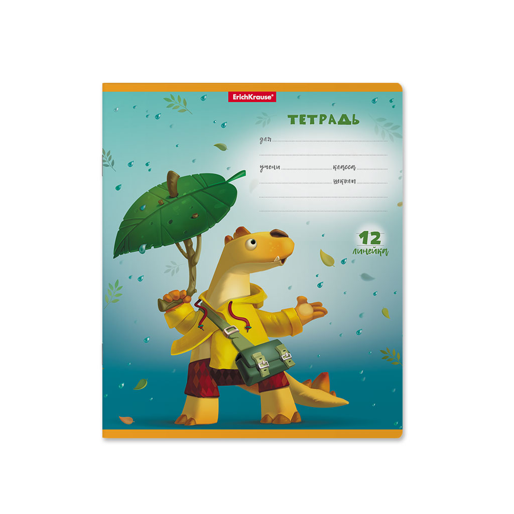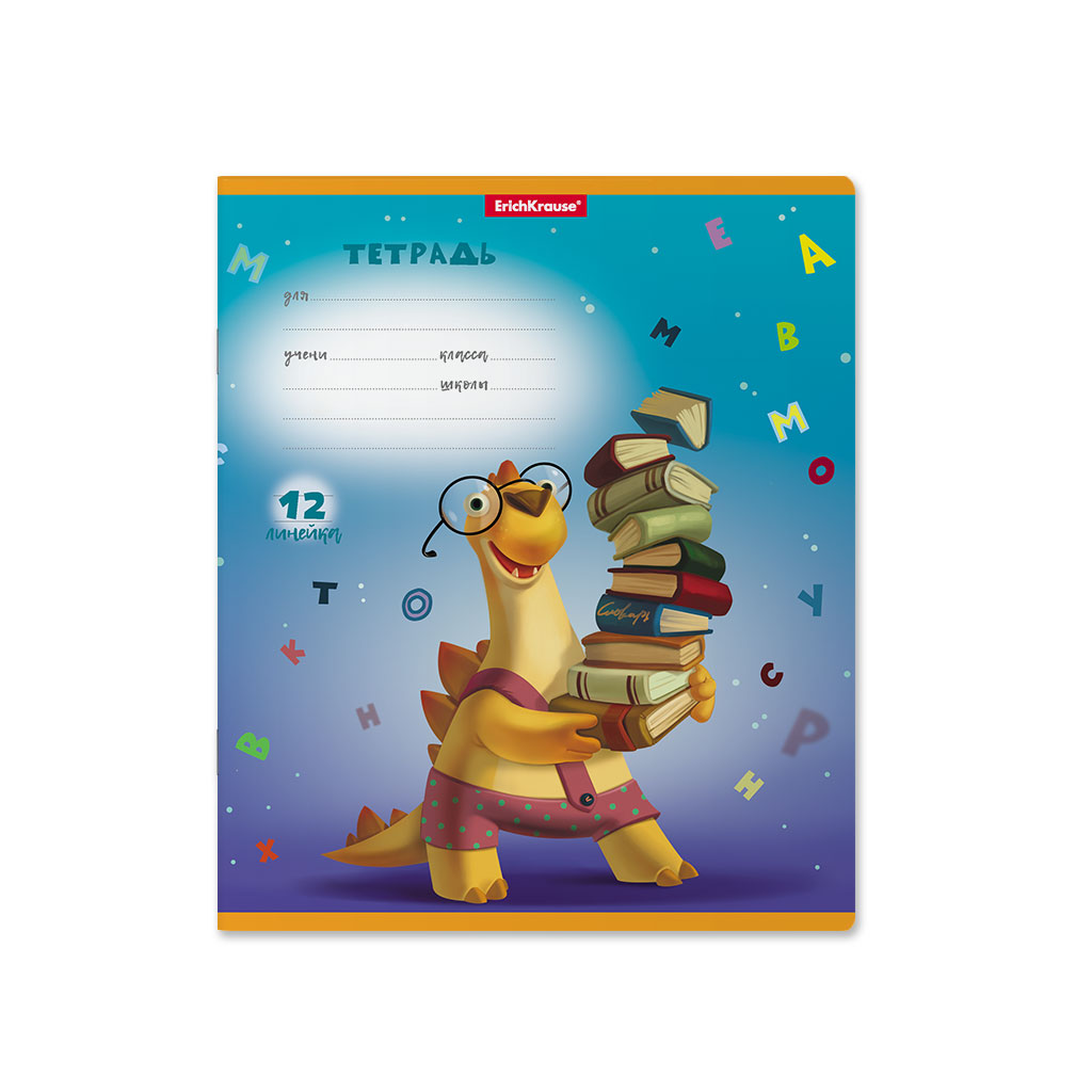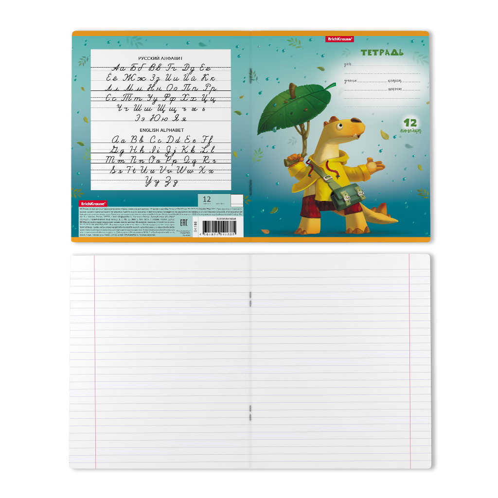 "ErichKrause" 54188 Тетрадь школьная ученическая, Динозаврик A5+ 170х203 мм 12 л. на скобе 60 г/кв.м линия .