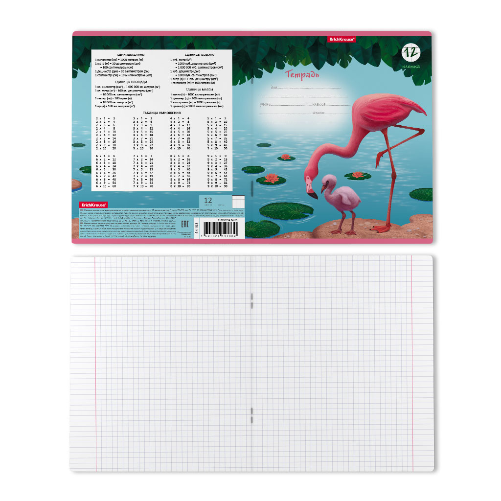Тетрадь школьная ученическая формата А5+ [170х203 мм]. Обложка из высококачественного мелованного картона плотностью 180 г/м2. В блоке 12 листов в клетку с полями. Бумага офсетная плотностью 60 г/м2. Цвет линовки - синий. Скругленные уголки обложки и блока. Тип скрепления - скоба. Тетради упакованы в термоусадочную пленку по 10 штук.