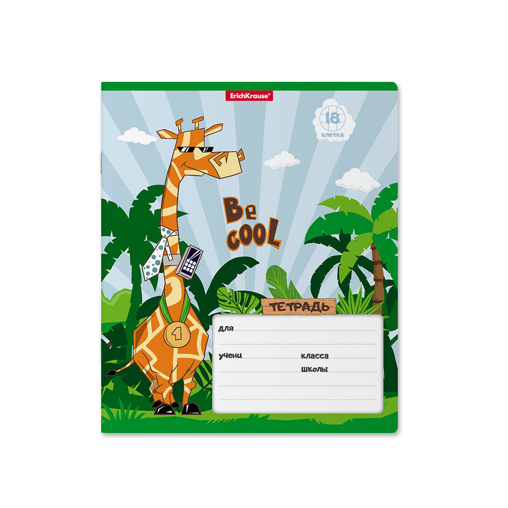 "ErichKrause" 53732 Тетрадь школьная ученическая, Cool Giraffe A5+ 170х203 мм 18 л. на скобе 60 г/кв.м клетка .