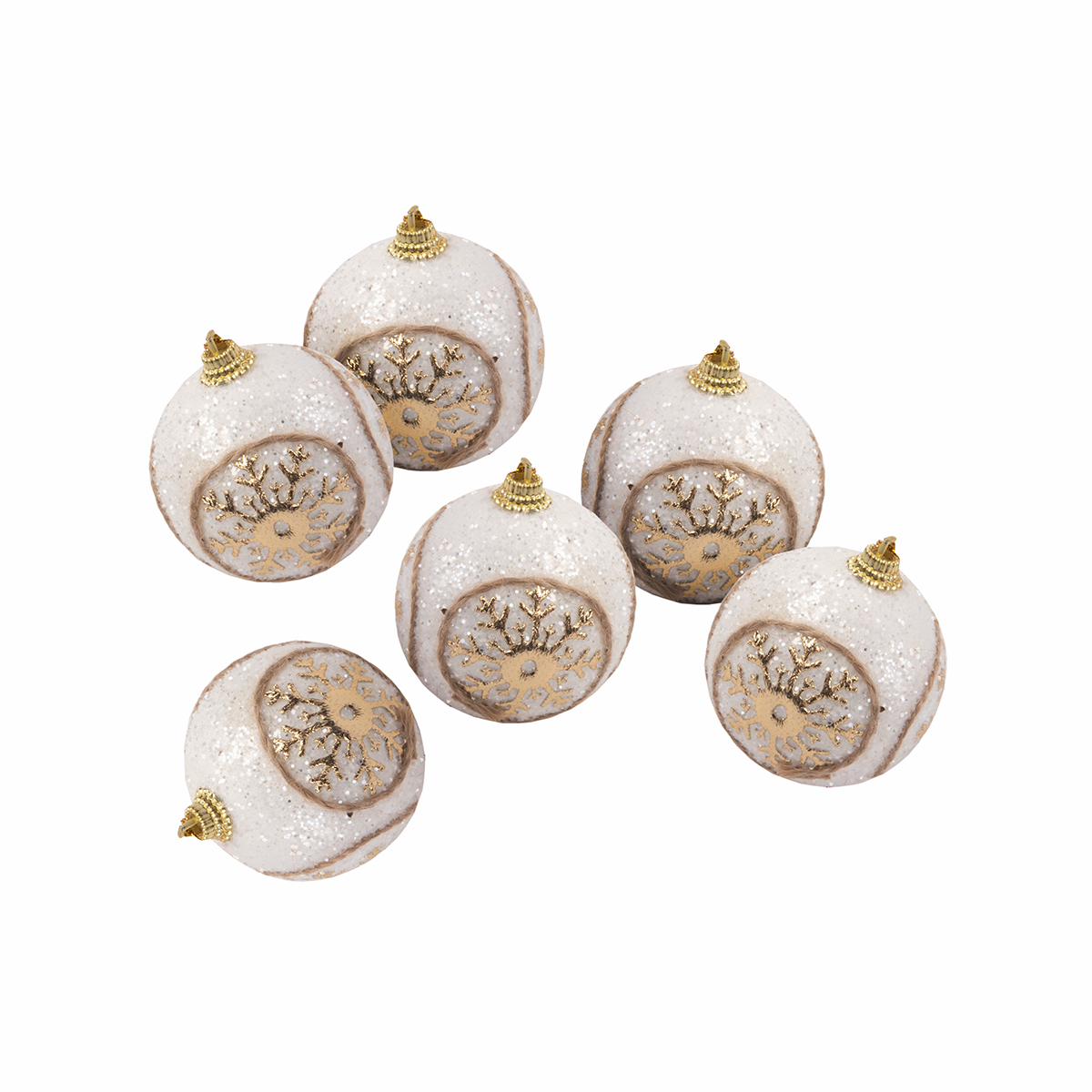 Набор ёлочных игрушек "Шар" SNOWEEKON SNW-A133 предназначен для украшения новогоднего дерева, декора помещения и создания праздничной атмосферы. Набор представлен шестью шарами, которые плотно покрыты блёстками и задекорированы золотыми снежинками. При попадании света от лампы, свечи или гирлянды, украшение будет приятно мерцать. Подвесные игрушки не будут утяжелять ветвь дерева или другую основу, на которой будут закреплены. Выполнены из пенопласта и полиэтилена - лёгких и долговечных материалов. Диаметр 1 игрушки: 6 см.