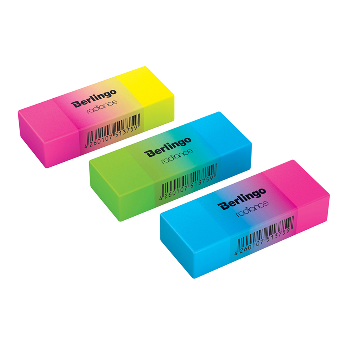 Ластики выполнены из высококачественного пластика. Прекрасно справляются с линиями от чернографитного карандаша, не оставляют следов и грязных разводов после себя. Упакованы в яркие картонные дисплей-боксы. У каждого ластика есть штрих-код. 3 цвета ассорти.
