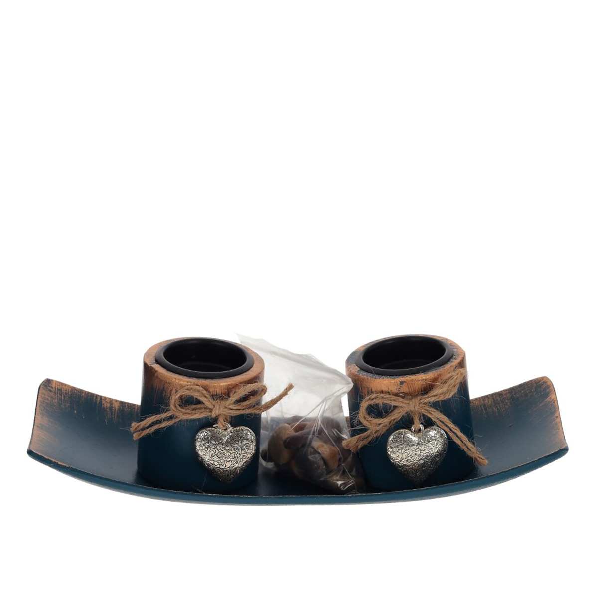 Подсвечник стильный и современный. Изделие состоит из двух подсвечников для свечей диаметром 4 см, подносика и декоративных камней. Декоративные подсвечники способны добавить стиля вашему дому, вписаться в любой интерьер, наполняя его гармонией и уютом.