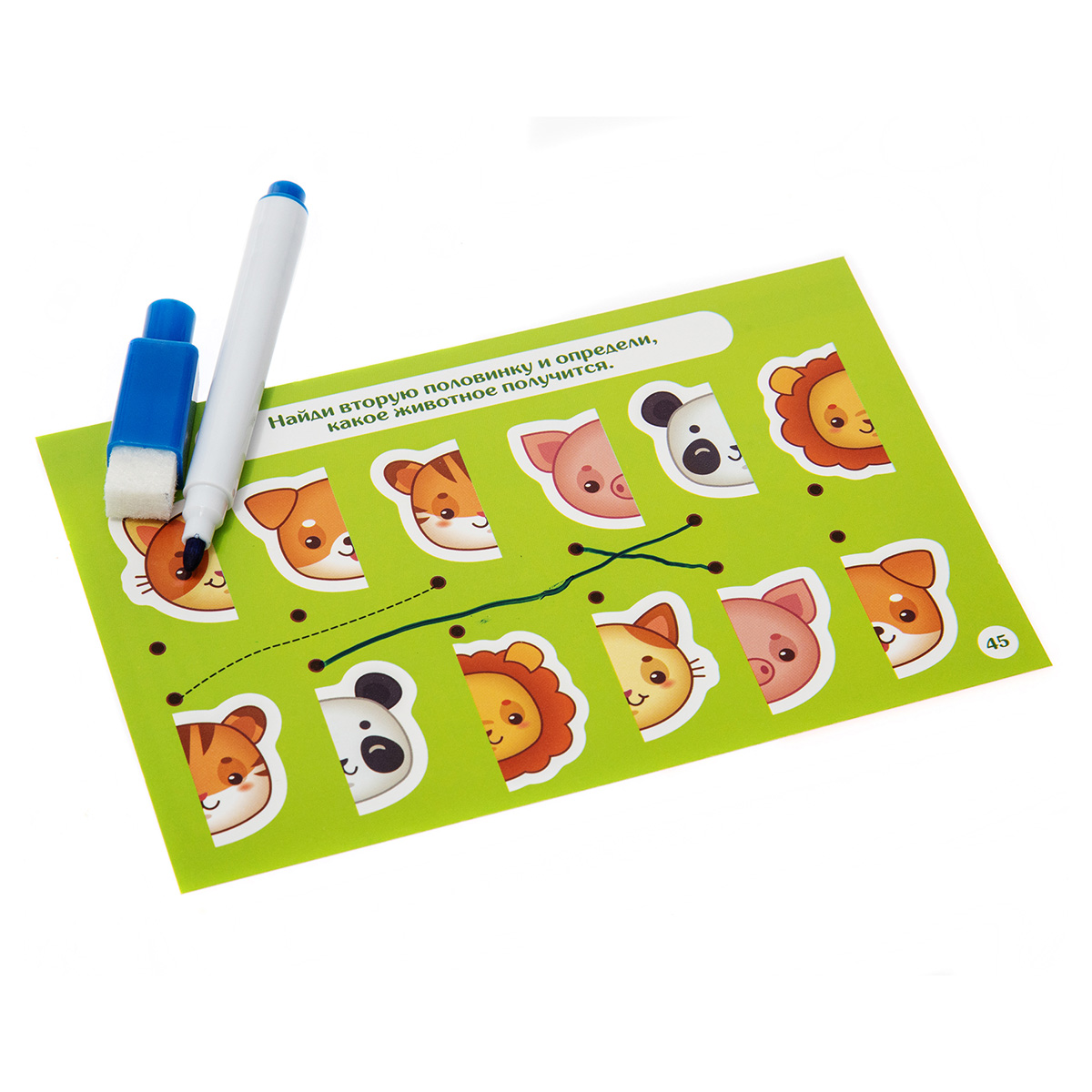 Как играть? Соединяйте точки, ищите недостающие детали, отмечайте различия и выполняйте задания. Переходите от простых задач к более сложным. Не бойтесь ошибаться – маркер на водной основе легко стирается обычной салфеткой.