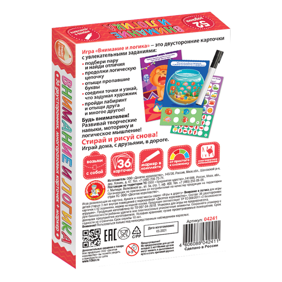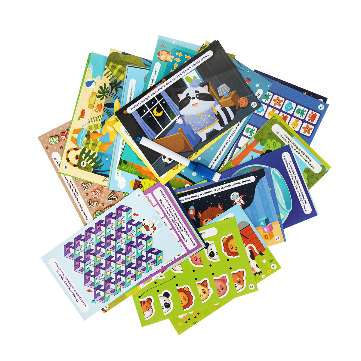 Состав: • многоразовые двусторонние карточки из ламинированного картона – 36 шт. • маркер на водной основе со стирающей губкой – 1 шт.