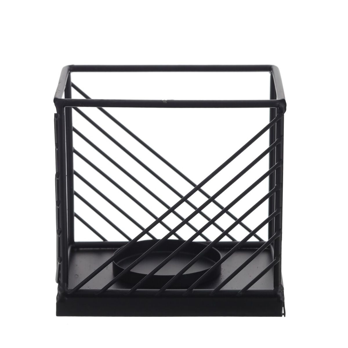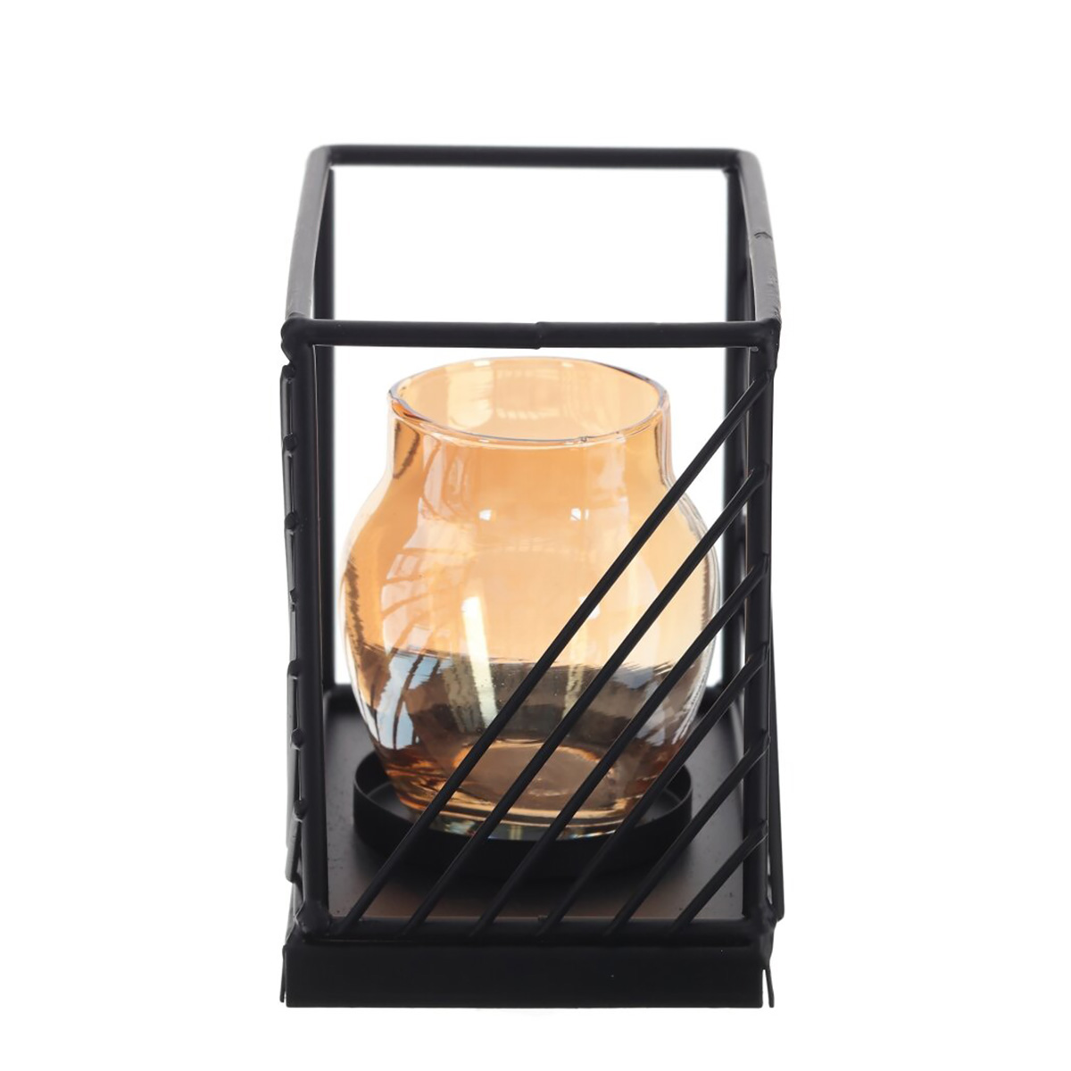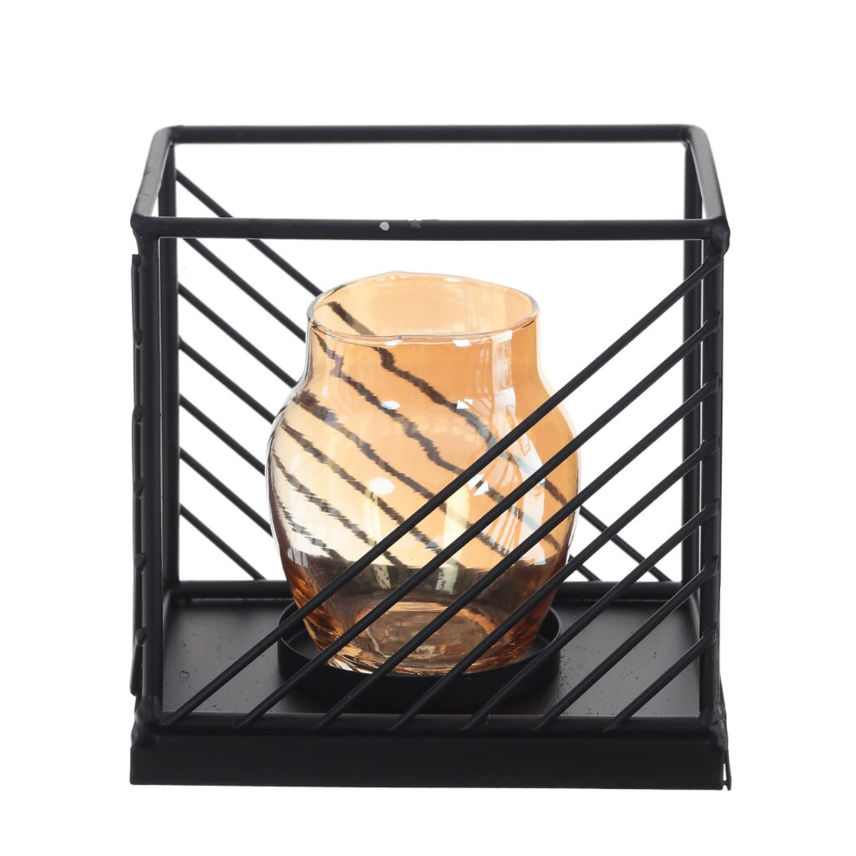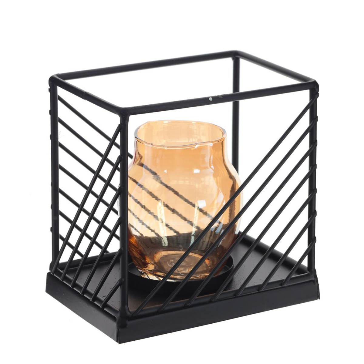 Подсвечник прямоугольной формы выполнен в современном стиле. Он украсит ваш дом как внутри, так и снаружи . Состоит из прозрачной стеклянной колбы для свечи и металлического каркаса.