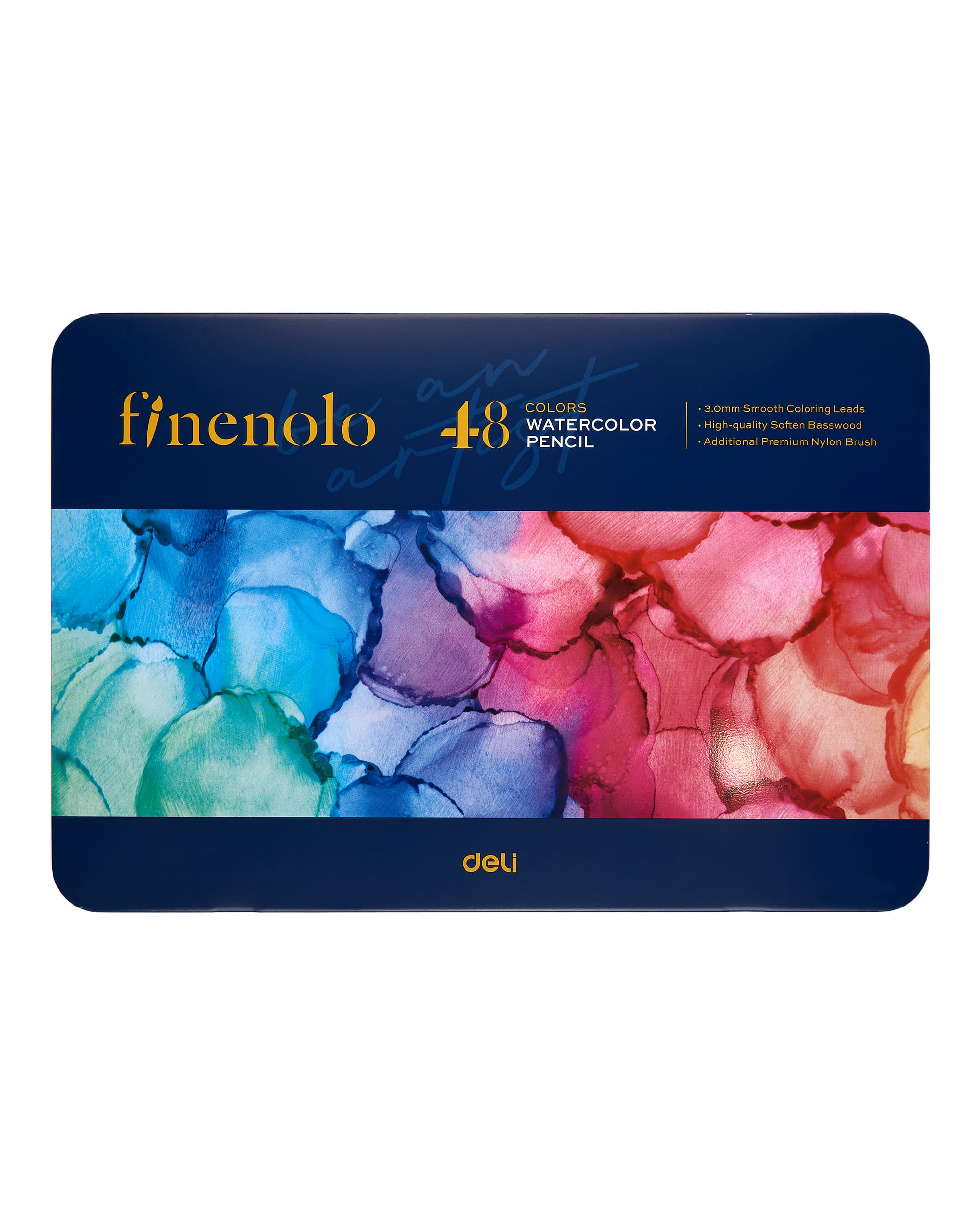 Набор из 48 акварельных карандашей Finenolo поставляется в металлическом пенале. Также в набор входит кисть из синтетики для размывок и создания акварельных эффектов. Акварельные карандаши Finenolo произведены на восковой основе. Они хорошо размываются и смешиваются между собой, образуя новые оттенки. Корпус из липы обеспечивает отличную заточку без сколов и защиту грифеля. Диаметр грифеля – 3 мм. На корпус карандашей нанесён номер и название цвета, наконечник корпуса окрашен в этот цвет. Карандаши подойдут как для начинающих и продвинутых художников, так и для детского творчества. Вся палитра акварельных карандашей Finenolo начитывет 72 цвета. Finenolo – художественный бренд, созданный компаниями Deli и MPM. Производитель канцелярских товаров №1 в Китае и крупный российский дистрибьютор товаров для художников объединились, чтобы разработать новую коллекцию арт-материалов. Карандаши от производителя №1 в Азии. Кисть в комплекте. Прочный и удобный металлический пенал.
