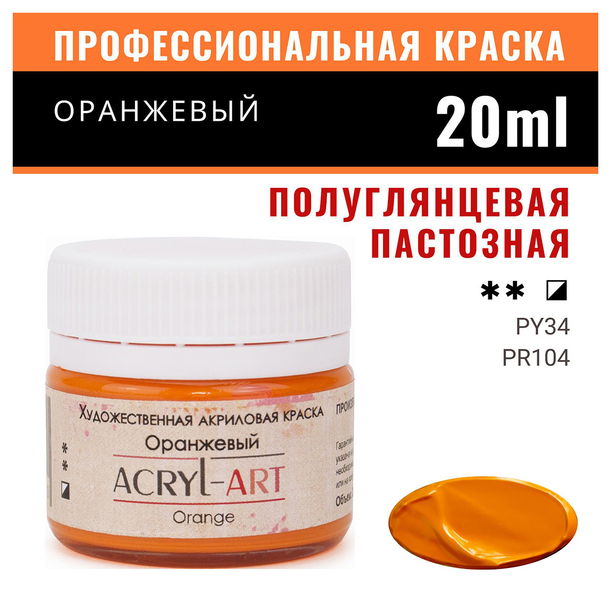 Краска акриловая ТАИР художественные Акрил-Арт 20 мл 0203021 Оранжевый Фото 1.