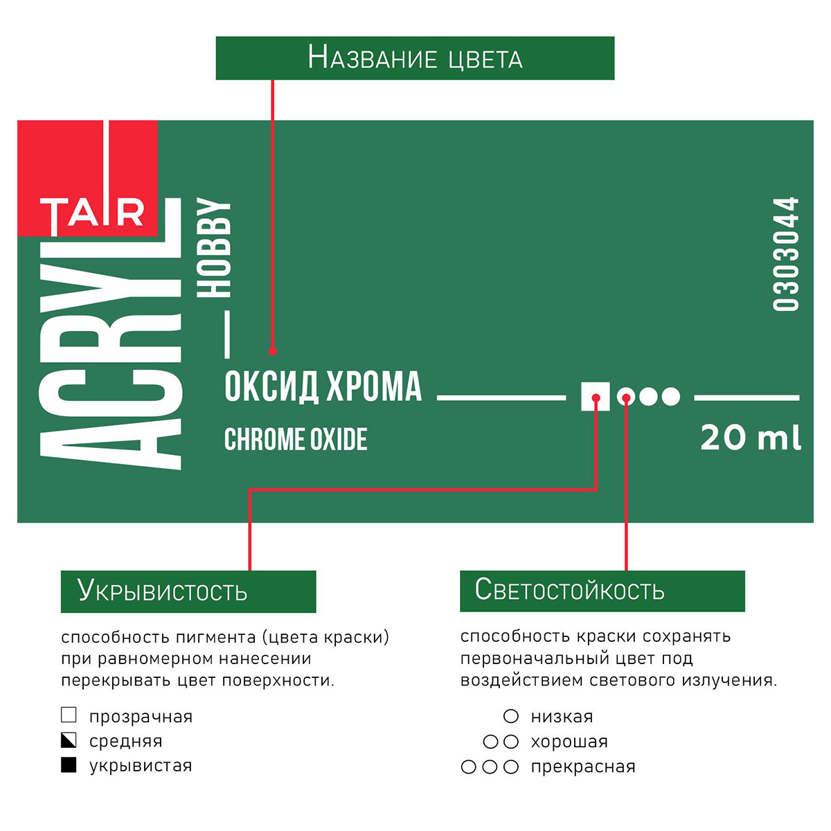 Краска акриловая ТАИР Акрил-Хобби 20 мл 303044 Оксид хрома Фото 6.