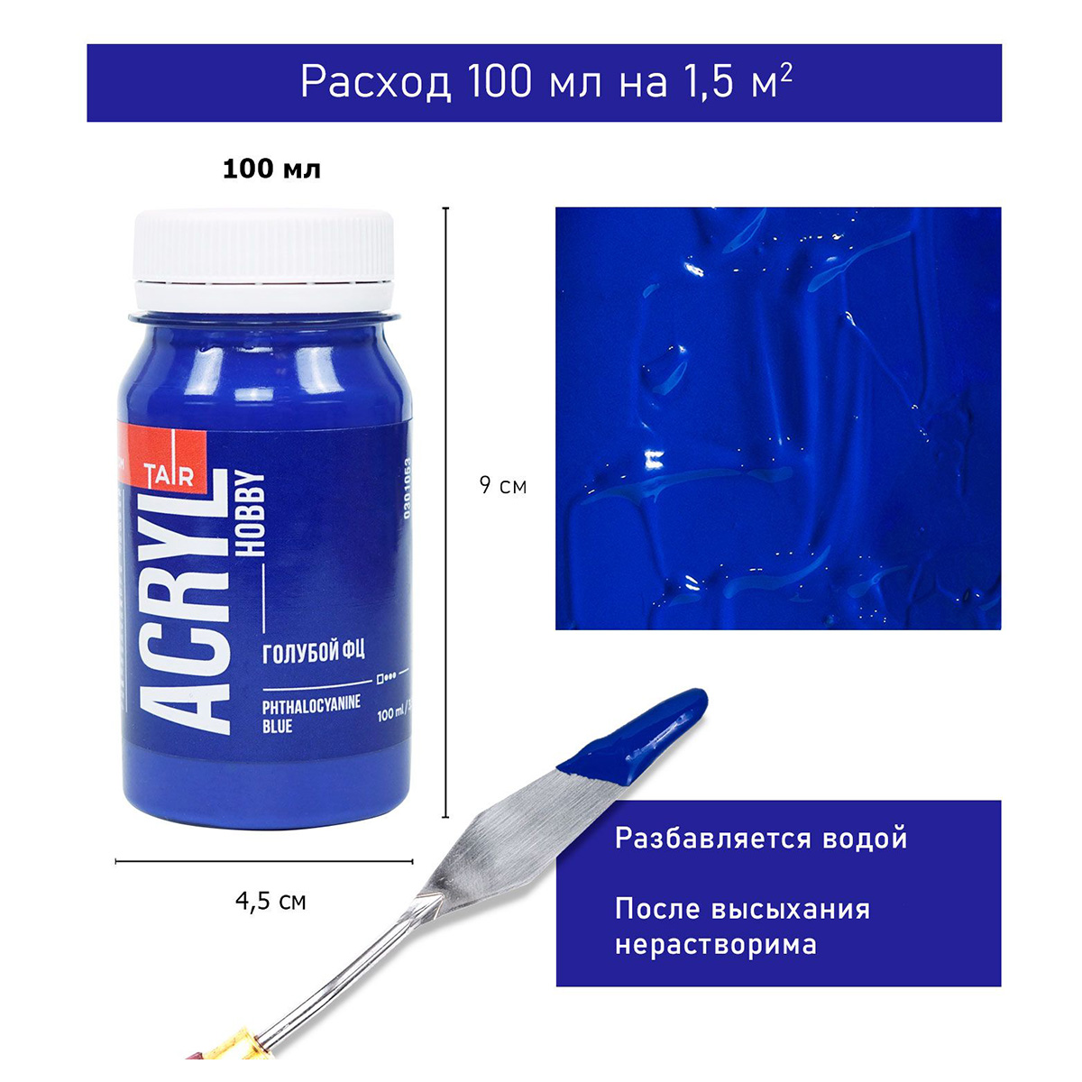 Краска акриловая ТАИР матовые Акрил-Хобби 100 мл 0301053 Голубой ФЦ Фото 5.