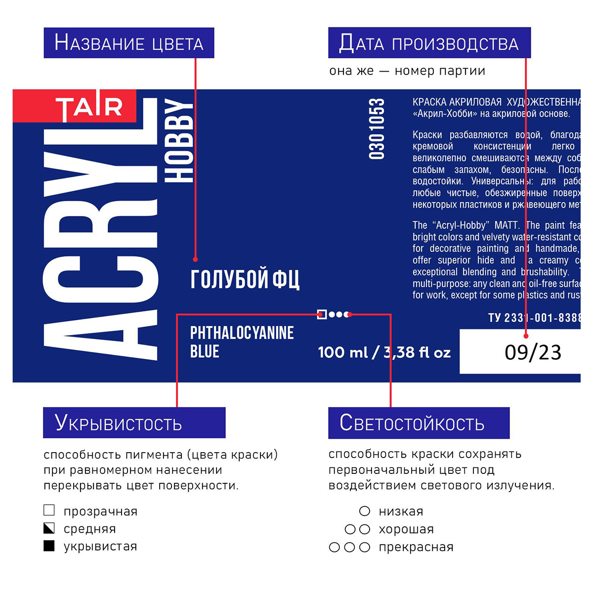Краска акриловая ТАИР матовые Акрил-Хобби 100 мл 0301053 Голубой ФЦ Фото 7.