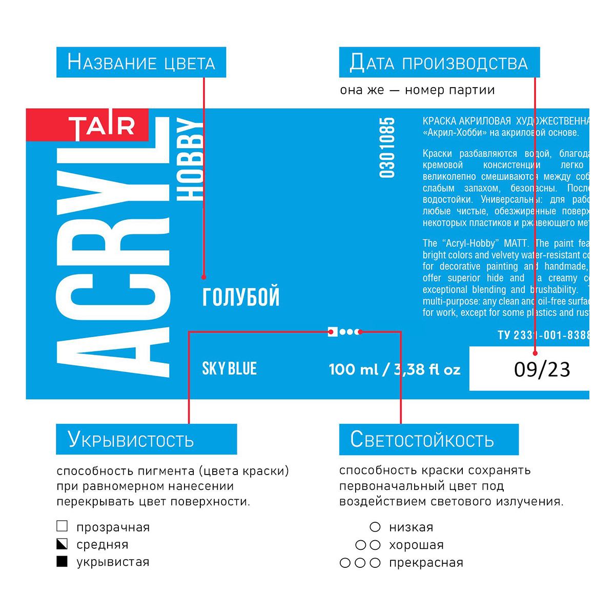 Краска акриловая ТАИР матовые Акрил-Хобби 100 мл 0301085 Голубой Фото 5.