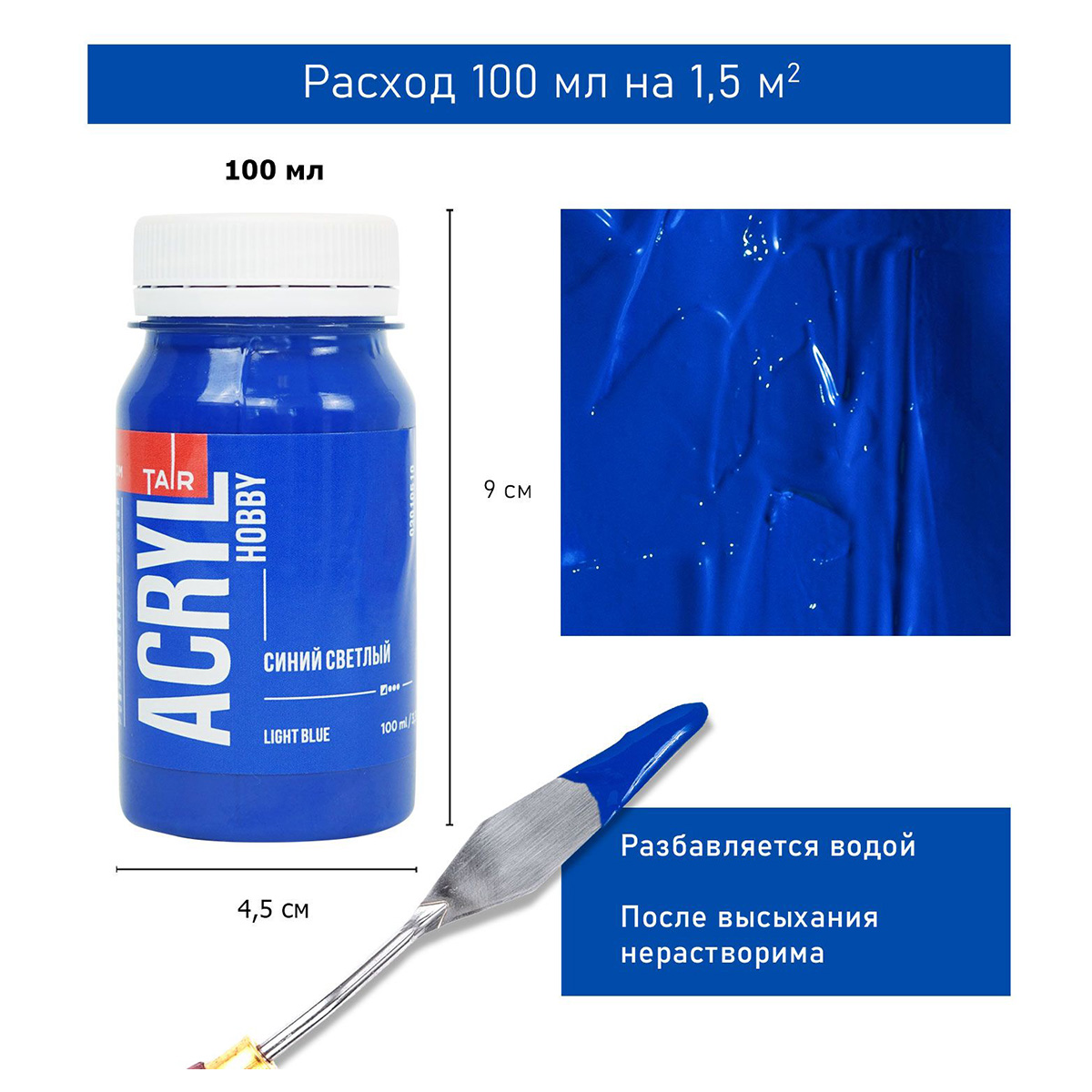 Краска акриловая ТАИР матовые Акрил-Хобби 100 мл 03010510 Синий светлый Фото 6.