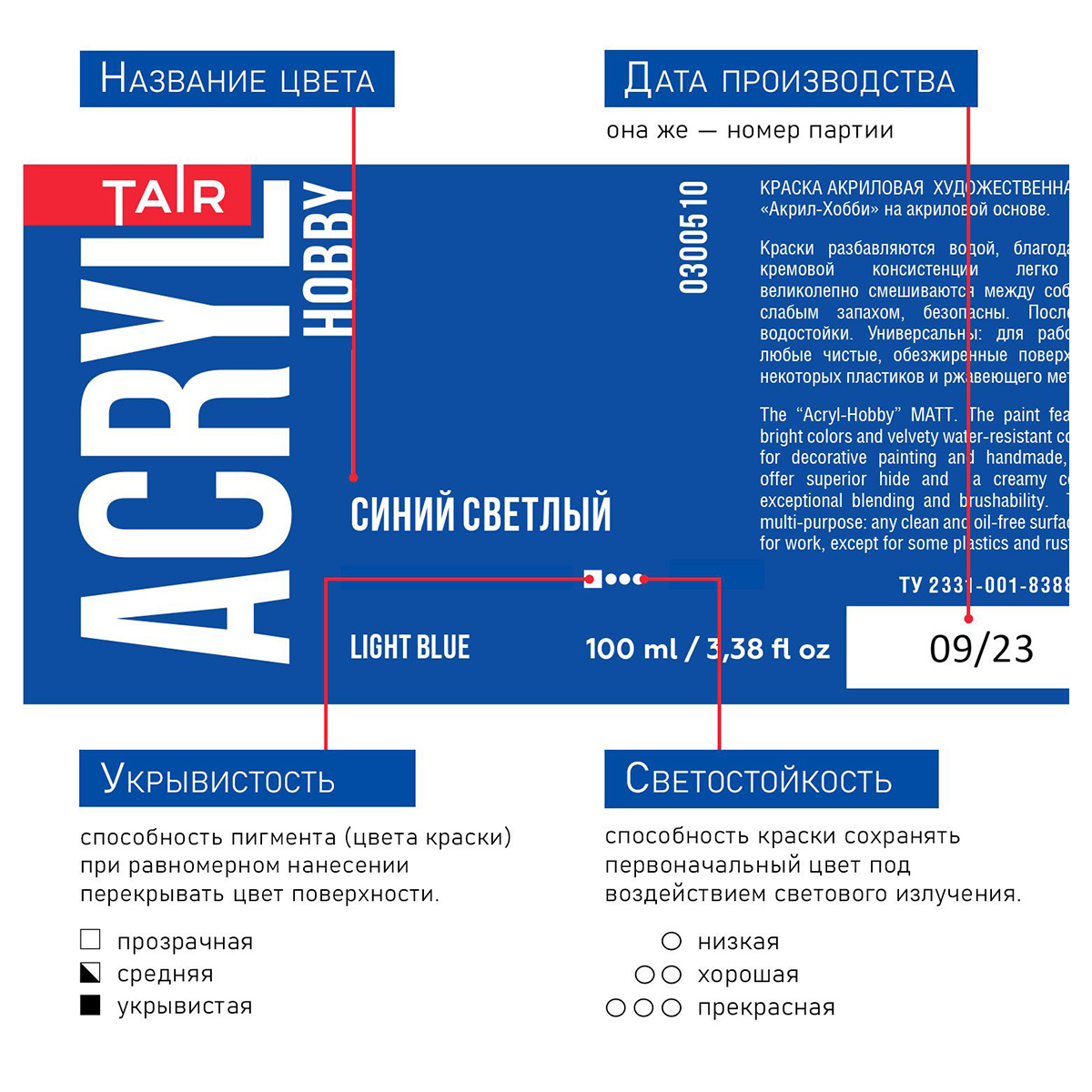 Краска акриловая "ТАИР" матовые "Акрил-Хобби" 100 мл 03010510 Синий светлый