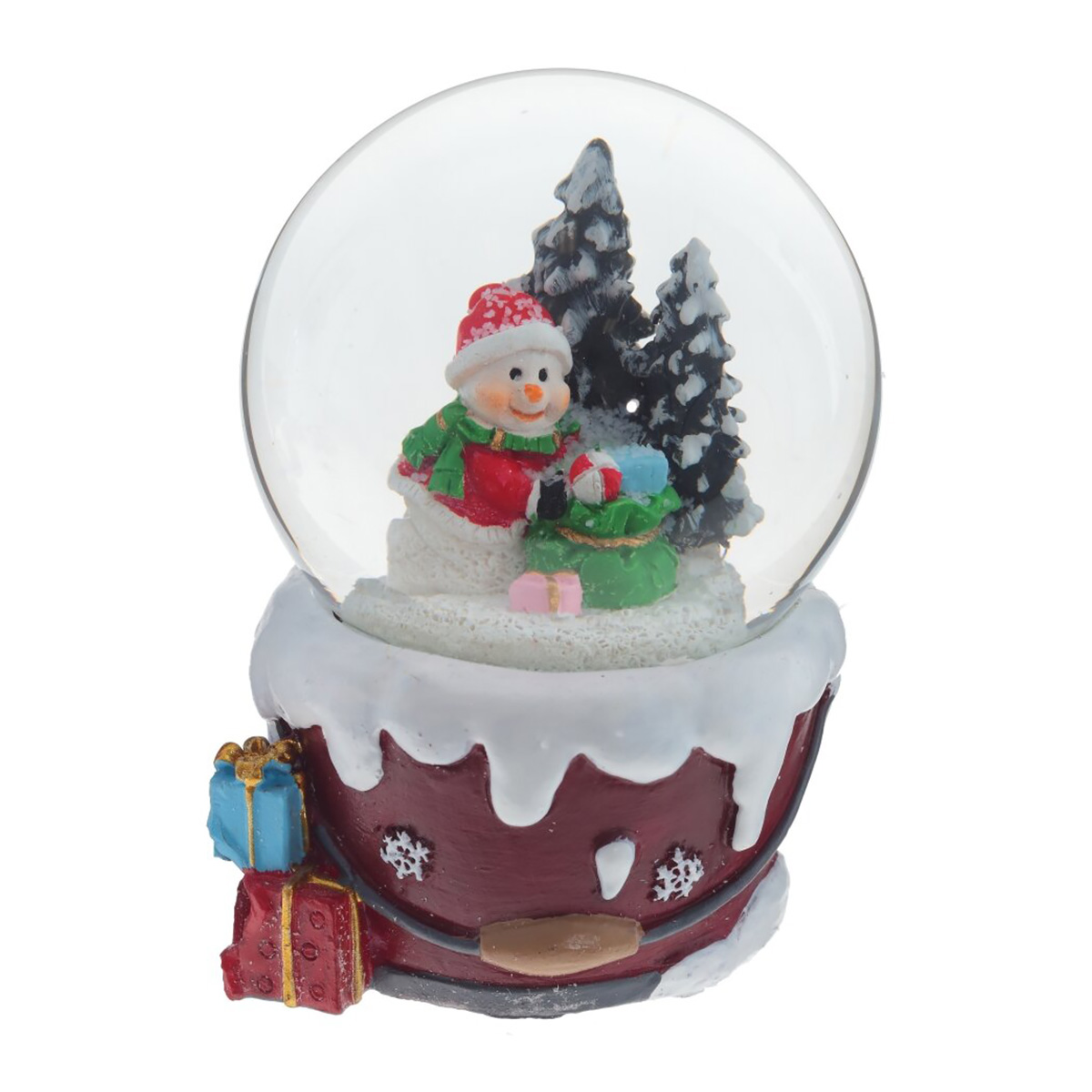 Новогодний снежный шар с фигуркой Снеговика/Деда Мороза внутри подарит вам праздничное настроение и радость. Завораживающее зрелище разворачивается внутри: при встряхивании поднимаются вверх сотни блёсток, создавая эффект снегопада. Изделие станет прекрасным подарком для родных и близких. Представлено в двух вариантах. Внимание: при длительном нахождении в минусовой температуре возможно образование льда, который сместит фигурки и повредит шар.