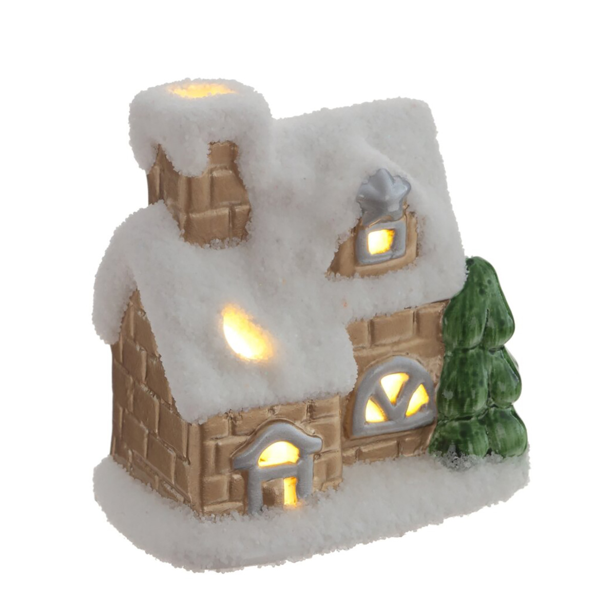 Чудесная маленькая фигурка домика с заснеженной крышей. Одним нажатием пальца вы можете внести в этот домик уют, "включив" в нем свет. Фигурка декоративная "Домик" с подсветкой, изготовлена из керамики. Работает от двух батареек LR44. Представлена в двух вариантах.