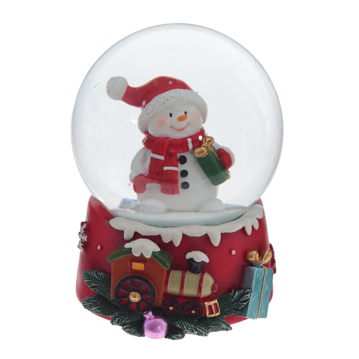 Новогодний снежный шар с фигуркой Снеговика внутри подарит вам праздничное настроение и радость. Завораживающее зрелище разворачивается внутри: при встряхивании поднимаются вверх сотни блёсток, создавая эффект снегопада. Изделие станет прекрасным подарком для родных и близких. Представлено в двух вариантах. Внимание: при длительном нахождении в минусовой температуре возможно образование льда, который сместит фигурки и повредит шар.