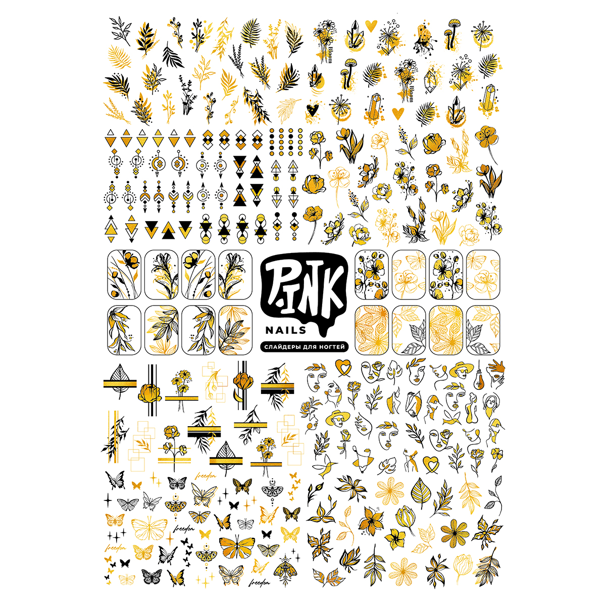 "Priority" Слайдеры для ногтей (фольга) 14.8 х 21 см ПИНК-320 Геометрия золото