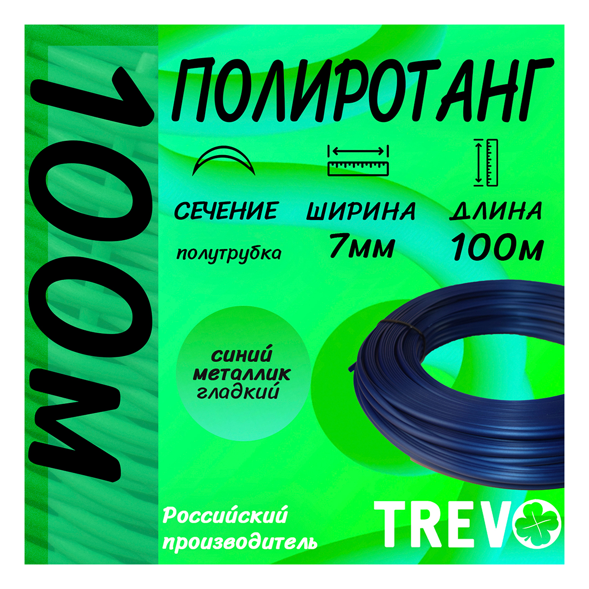 "TREVO" Полиротанг гладкий, "Lider" полутрубка 7 мм 100 м 1100-100 синий металлик