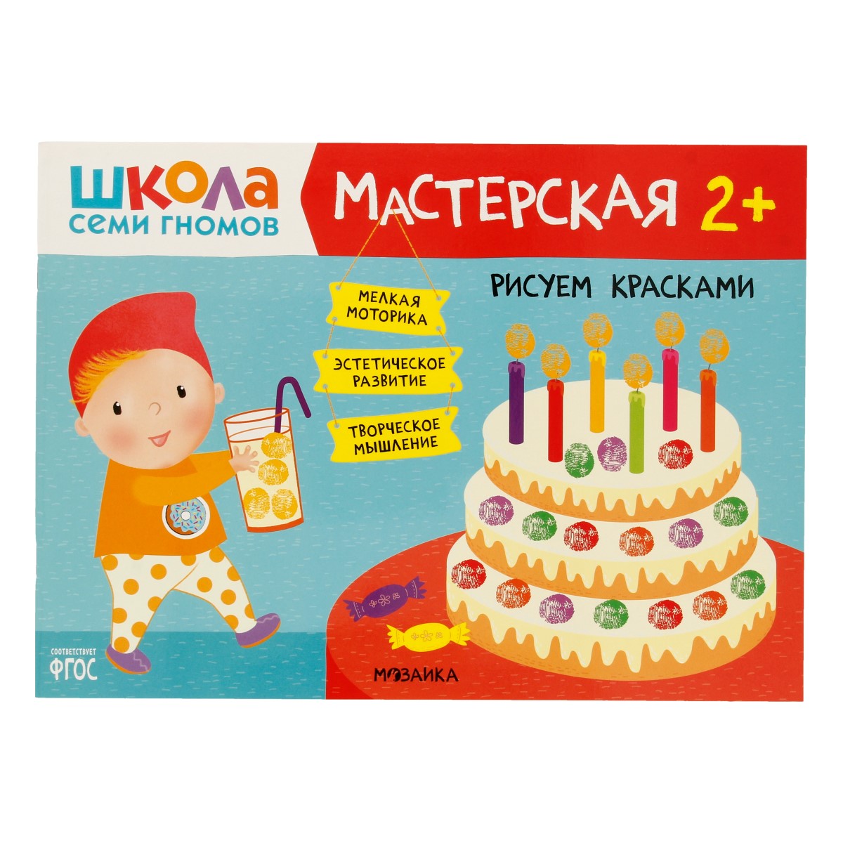 Рисуем красками 2+ , творческий альбом Книга «Рисуем красками 2+» из серии «Школа Семи Гномов. Мастерская» — это альбом для занятий рисованием с ребенком от 2 до 3 лет. Занятия на близкие и понятные ребенку темы расположены по мере усложнения: поступательно переходя от освоения простых навыков к более сложным заданиям, ребенок научится рисовать с помощью пальчиков и создавать красочные рисунки. Результатом каждого занятия станет законченное произведение, которое ребенок создал сам. В конце альбома юного художника ждет итоговое задание, где он сможет применить все свои новые умения. Подходящий уровень сложности и полученное удовольствие от занятий — вот залог успешного обучения по системе.