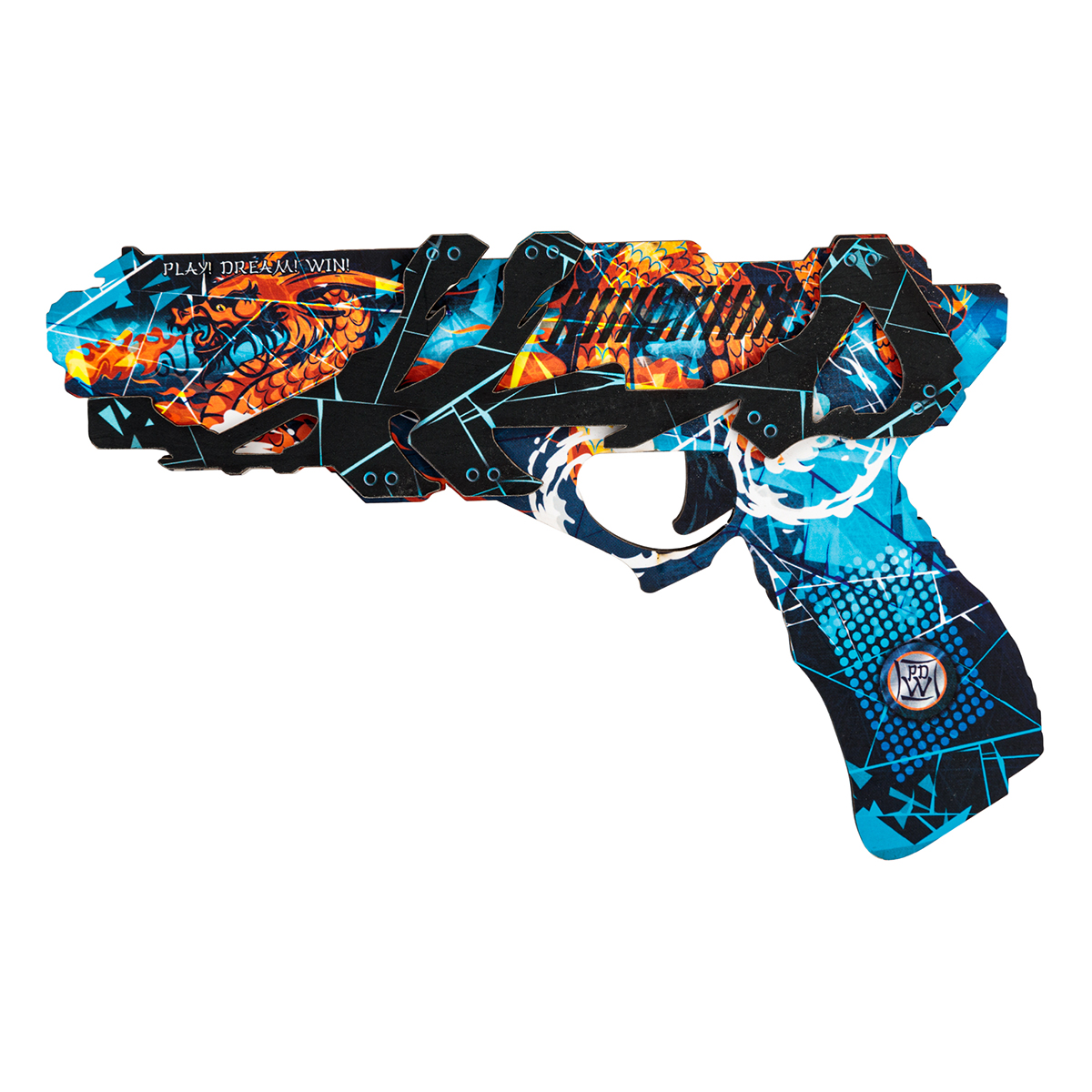 Этот револьвер выполнен из высококачественных материалов, что делает его безопасным и прочным. Он имеет яркий реалистичный дизайн и выглядит как настоящий револьвер. Деревянная рукоятка обеспечивает удобный захват. Детский деревянный револьвер из ХДФ станет отличным дополнением к коллекции игрушек и поможет развить у ребенка пространственное мышление и координацию движений. Размер - 22 см.