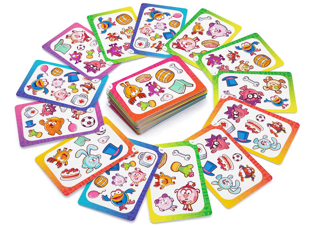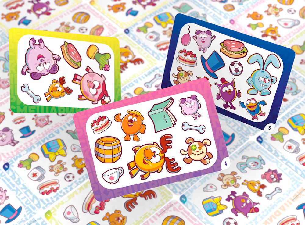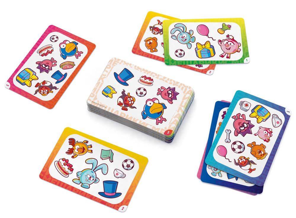 Развивает память и скорость, напоминает Живые картинки и Доббль, но по более привлекательной цене. Компактная коробка. Интересно играть любым составом от 2 до 6 игроков. Простые правила. В состав настольной игры Смешарики. Бесконечный праздник входят: 54 двусторонние карты, правила игры.