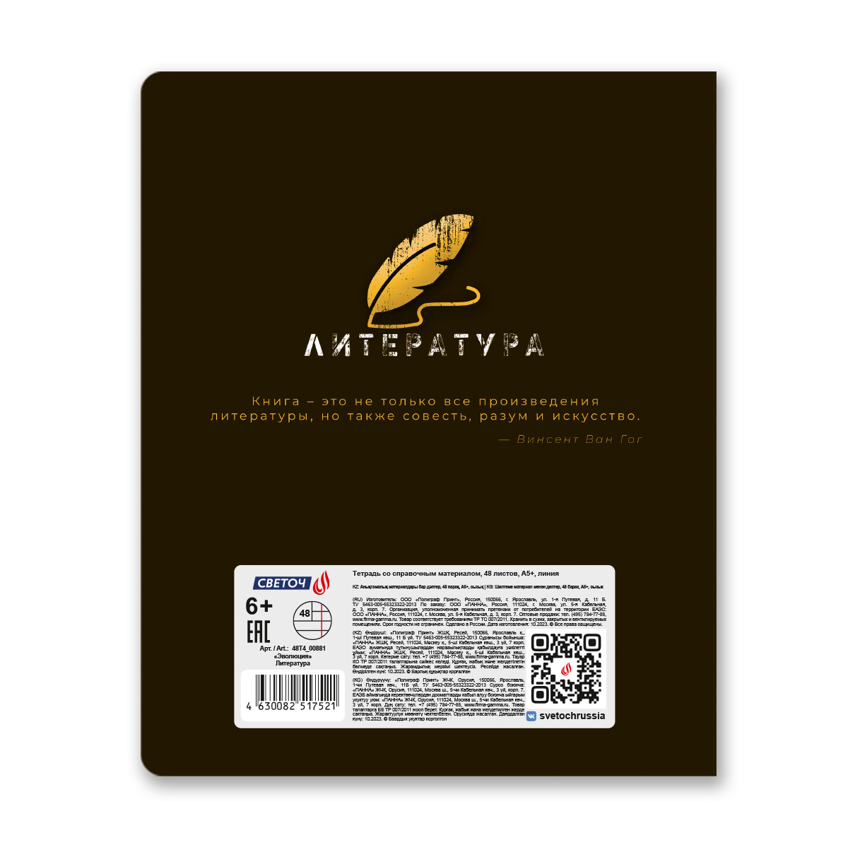 Предметная тетрадь А5 формата, 48 листов предназначена для учащихся средних и старших классов. Внутренний блок изготовлен из качественной писчей бумаги плотностью 65 г/кв. м, 100% белизны, обложка из мелованного картона плотностью 190 г/кв. м. Дизайн изделия дополнен спецэффектом в виде глянцевой ламинации. Линовка - линия. Вид скрепления - скоба. Тетради имеют закругленные уголки, красные поля, титульный лист и запечатанный форзац. Справочная информация по предмету на форзацах, обороте титульного листа и последнем листе.
