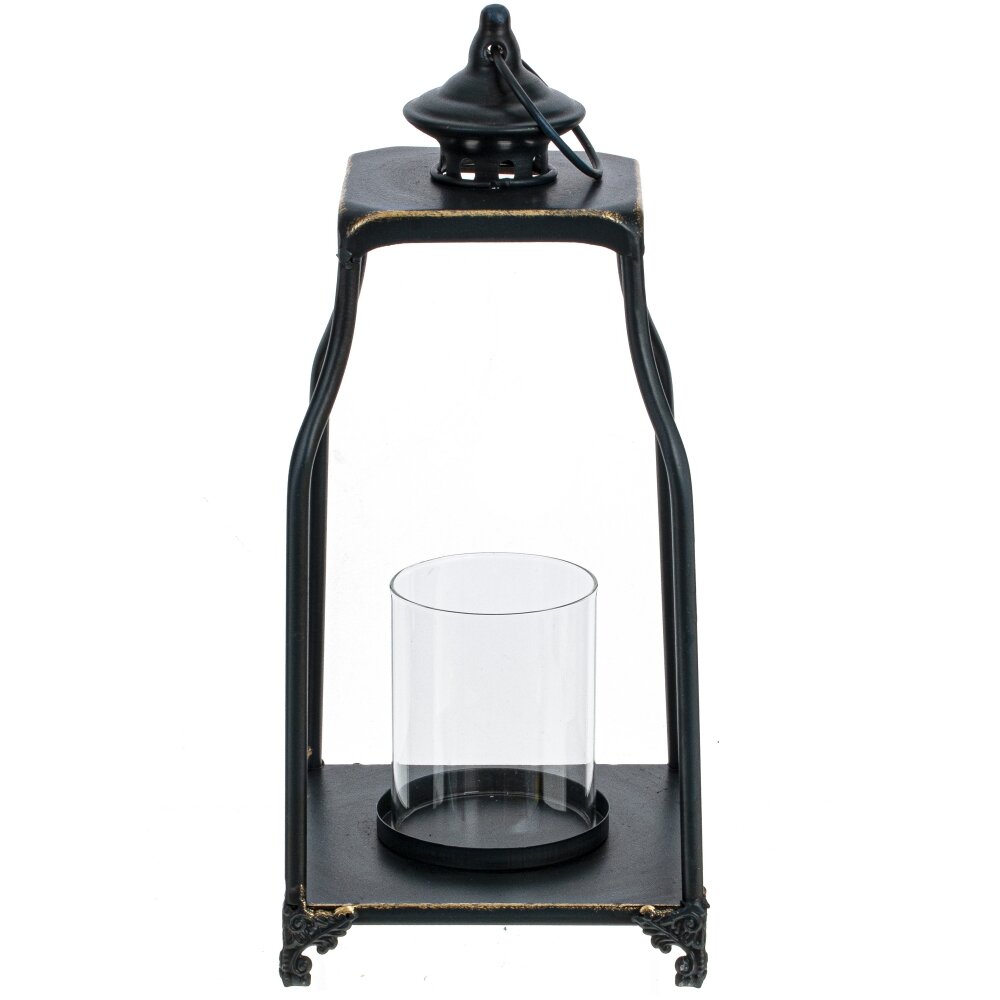 Металлический подсвечник в форме фонаря со стеклянной колбой внутри. Ручка на верхней части подсвечника предназначена для удобства переноски или подвешивания. Подсвечник может быть использован как декоративный элемент в интерьере или для освещения на открытом воздухе. Диаметр свечи: 13 см.