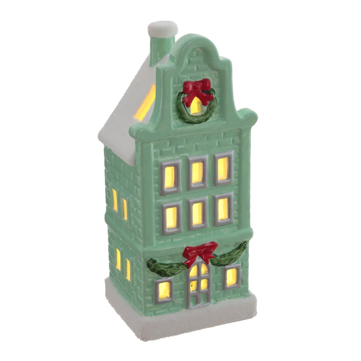 Чудесная фигурка домика с заснеженной крышей. Одним нажатием пальца вы можете внести в этот домик уют, "включив" в нем свет. Фигурка декоративная "Домик" с подсветкой, изготовлена из керамики. Работает от двух батареек LR44.