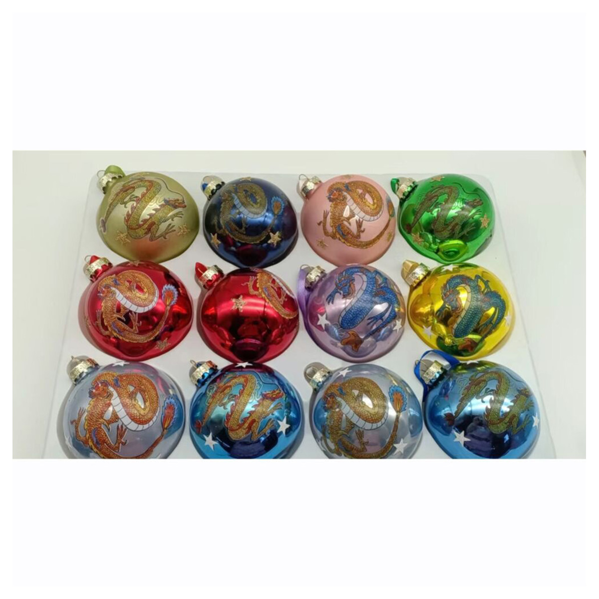 Игрушка елочная с изображением Дракона - прекрасный выбор для тех, кто любит создавать новогоднее настроение в своем доме. Этот стеклянный шар будет является символом года 2024, доставляя владельцу удачу и счастье.