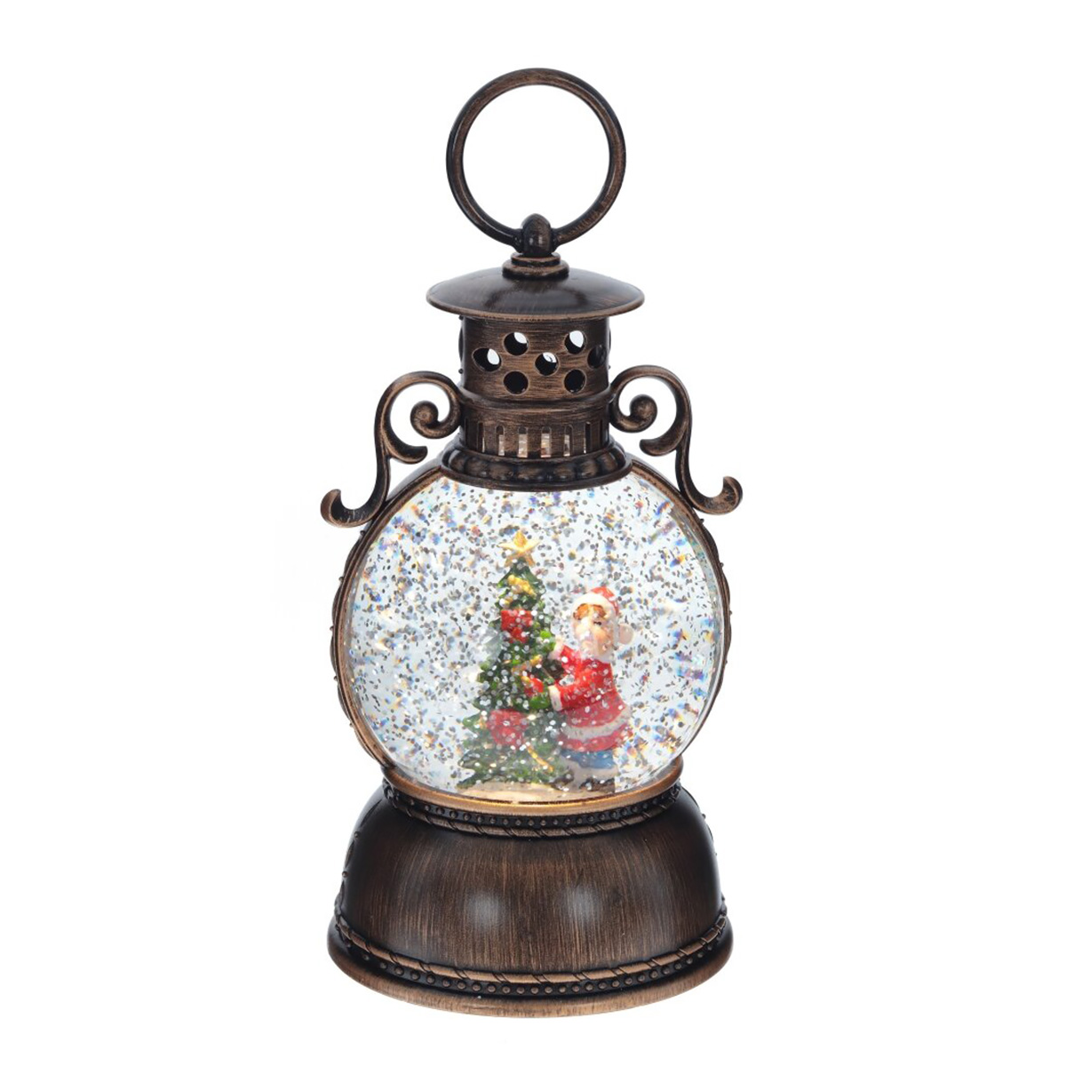 796154 Изделие декоративное Фонарь (подсветка, музыка, вьюга) 11 х 11 х 24 см Коричневый Фото 1.