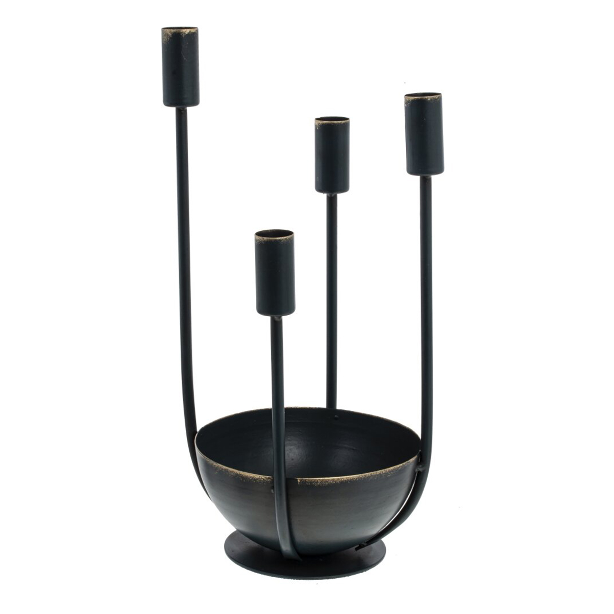 Элегантный и современный подсвечник для четырех свечей, идеально подходящий для придания уюта любой комнате. Изделие, выполненое из металла, добавит красивое сияние вашему дому, а центральная чаша может быть использована для различных декоративных элементов. Диаметр свечи: 2 см.