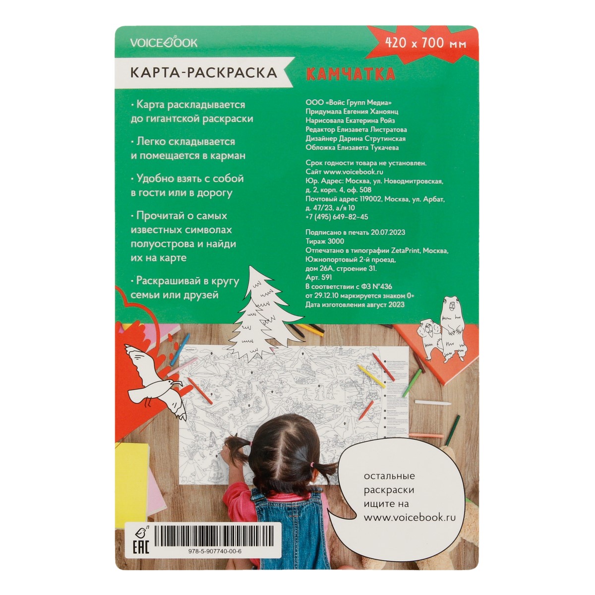 Карта столицы России разворачивается в гигантскую раскраску. В сложенном виде она помещается в карман: можно взять с собой в путешествие, на прогулку или в гости.