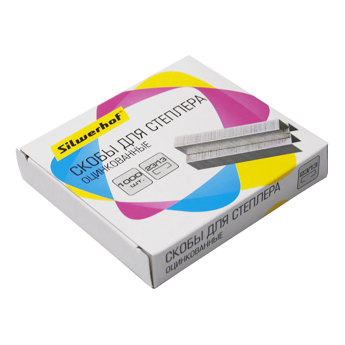 Скобы для степлера Silwerhof 23/13 - это незаменимый аксессуар для любого офиса или домашнего использования. Оцинкованные скобы изготовлены из высокопрочной стали, которая обеспечивает надежное и долговечное скрепление документов. Размеры скоб составляют 23мм в ширину и 13мм в длину, что позволяет скреплять даже самые толстые документы. В одной упаковке содержится 1000 штук, что гарантирует длительный срок использования без необходимости постоянной покупки новых скоб.