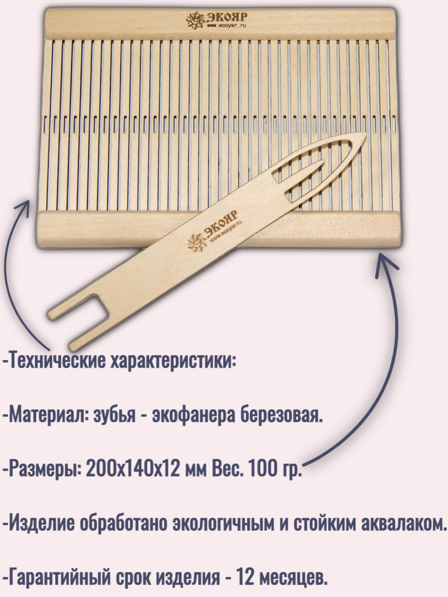 Инструмент для тканья поясов и тесьмы в определенной технике. Изготовлено из качественной экофанеры. Лазерная обработка граней позволяет максимально снизить риск зацепов даже у шерстяной нити, отверстия глазков увеличенные [10 мм] позволит заправить даже толстую нить, ширина зева подходит для различных типов и толщин нитей и высота маха составляет 10 см. Бердо компактное, но позволяет заправить до 72 нитей [т.к. имеет 36 зубьев]. В комплект идет челнок иглица.