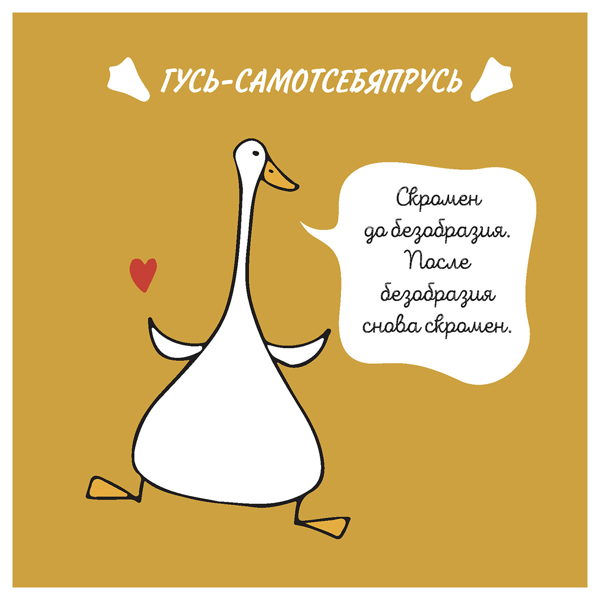 На его страницах вас ждёт мегапопулярный герой — харизматичный гусь, готовый поделиться своими оригинальными взглядами на жизнь. Удобный квадратный формат, креативный дизайн и забавные сюжеты поднимут вам настроение и настроят на позитивный лад в любом месте и в любое время!