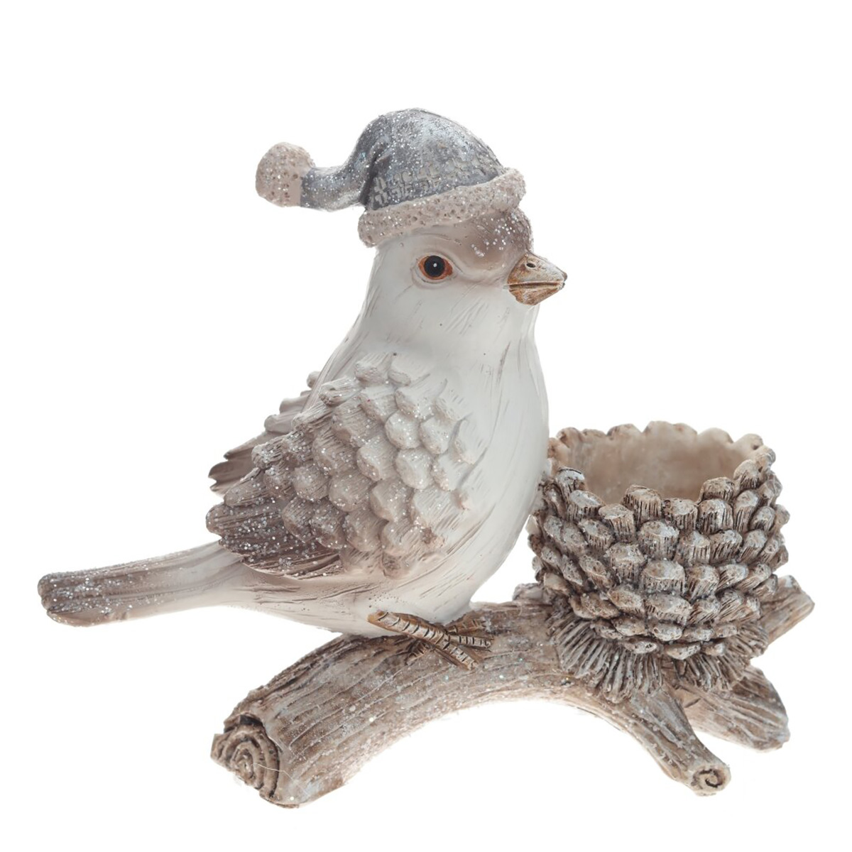 Птица, сидящая на ветке в бежевых тонах. Такая фигурка отлично подойдет для новогоднего декора, можно использовать как отдельный элемент или в составе композиции.