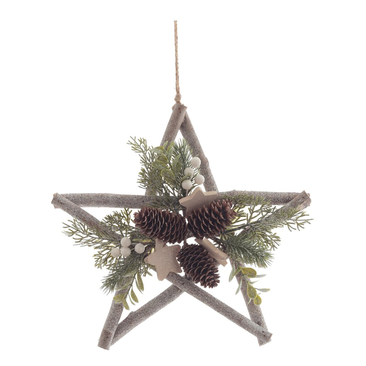 Красивая подвесная звезда из дерева, украшенная шишками, хвойными ветками, ягодами - роскошное новогоднее украшение. Преобразит любое помещение и наполнит его духом приближающегося Нового года и Рождества!