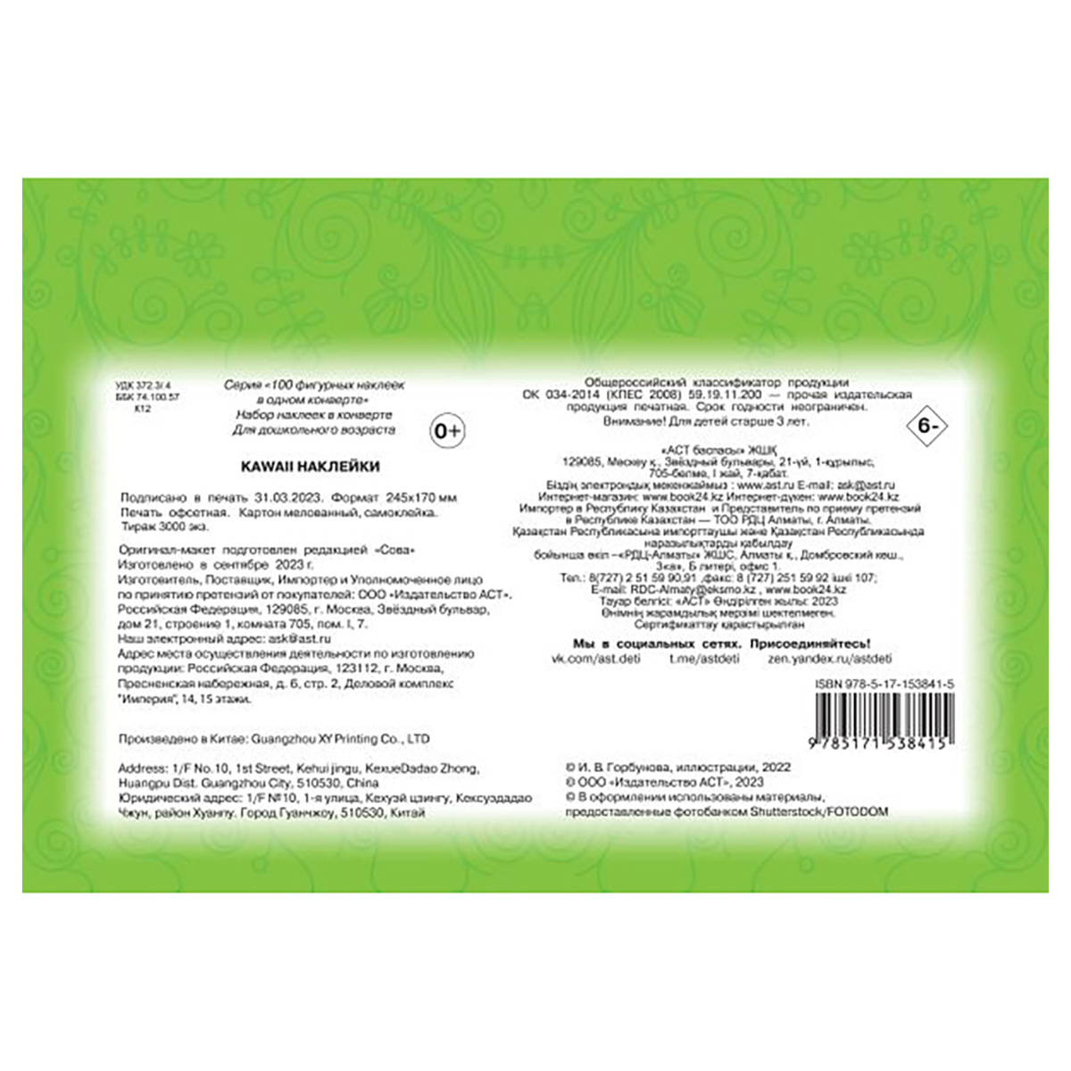 "Kawaii наклейки" – большой и яркий конверт, в котором собрано 100 фигурных наклеек. Внутри собраны самые разные стикеры: животные, сладости, фрукты, сказочные существа, украшения и аксессуары — всё, что так любят девочки! Юная модница может украсить обложки тетрадей и учебников, личный дневник, чехол для смартфона и многое другое.