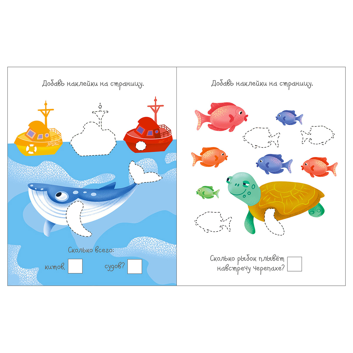 Более 220 наклеек, красочные иллюстрации и интересные задания надолго захватят внимание вашего малыша. Он будет заниматься с удовольствием и узнает, об интересном подводном мире и его обитателях.