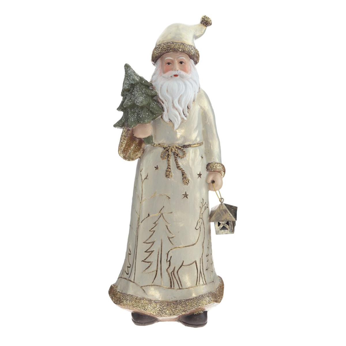 Потрясающая фигурка Деда Мороза обязательно добавит нотку праздничного волшебства в новогодний декор. Восхитительная детализация: от меховой шубы до изящных черт лица и бороды. В руках он держит миниатюрную рождественскую елку, а так же фонарик. Это очаровательное украшение должно быть у всех, кто любит украшать свой дом к празднику.
